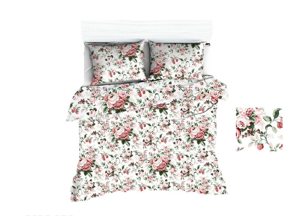 Pościel bawełniana 140×200 1670E biała róże jasne czerwone 1055N