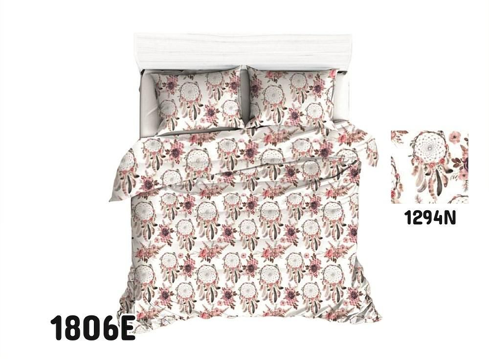 Pościel bawełniana 140×200 1806E Łapacz snów piórka biała różowa 1294N