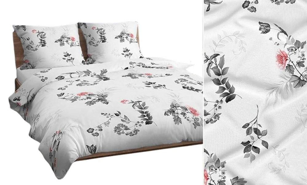 Pościel bawełniana 140×200 biała grafitowa liście kwiaty 4304 C bawełna Max