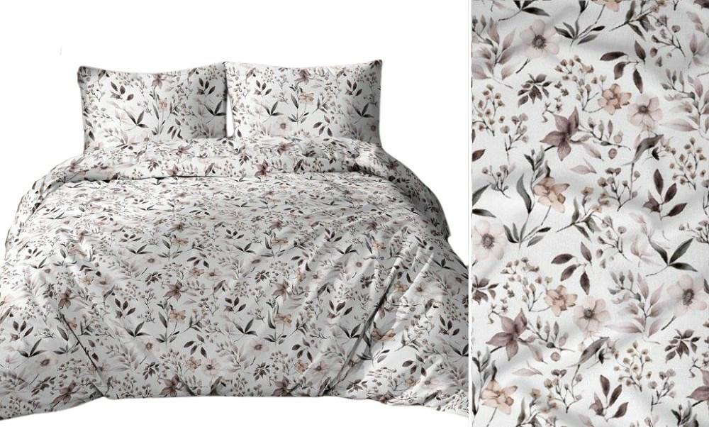 Pościel bawełniana 140×200 biała szara pudrowa różowa ciemna kwiaty liście 5046 D bawełna Max