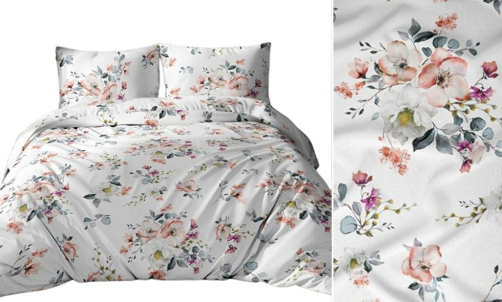 Pościel bawełniana 140×200 biała szara wielokolorowa kwiaty liście 3254 D bawełna Max