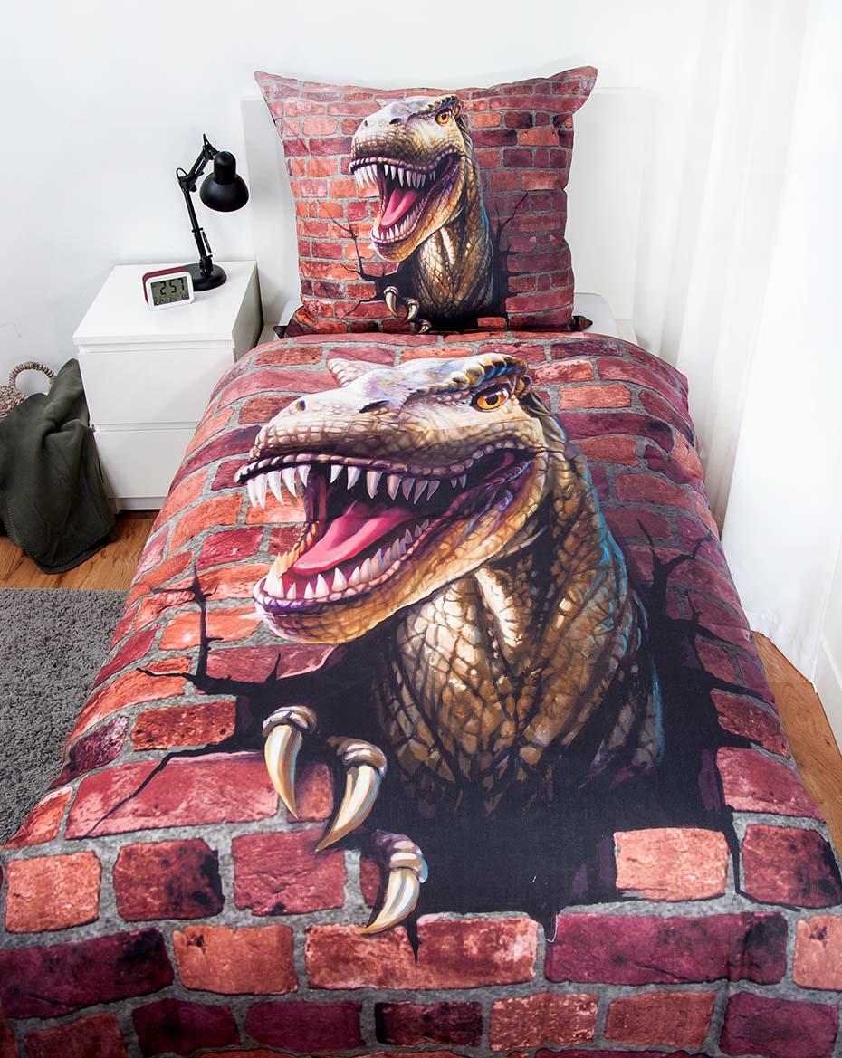 Pościel bawełniana 140×200 Dino 3D brązowa poszewka 70×90