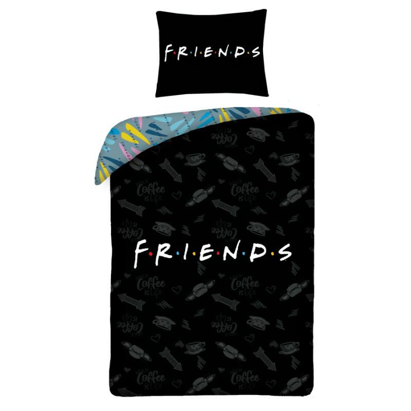 Pościel bawełniana 140×200 Friends czarna niebieska – Komfort i styl dla Twojego dziecka