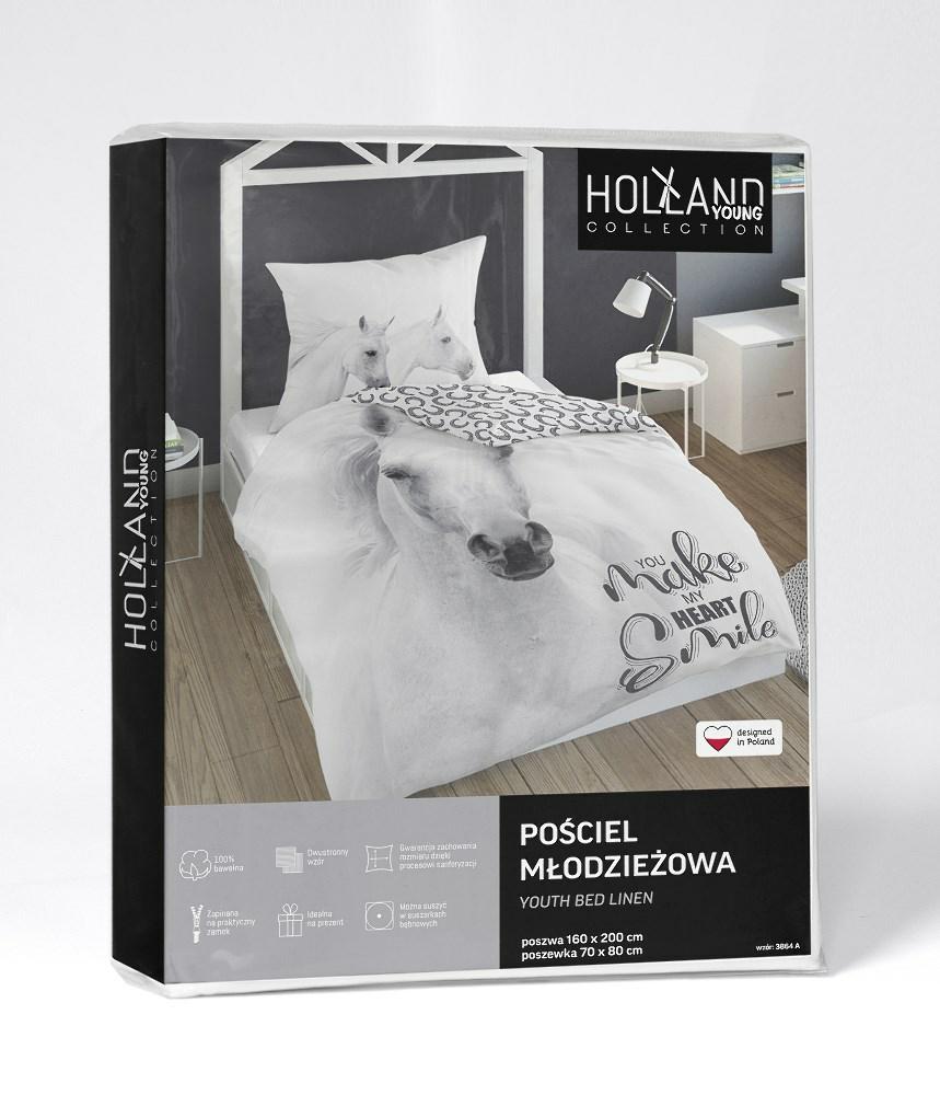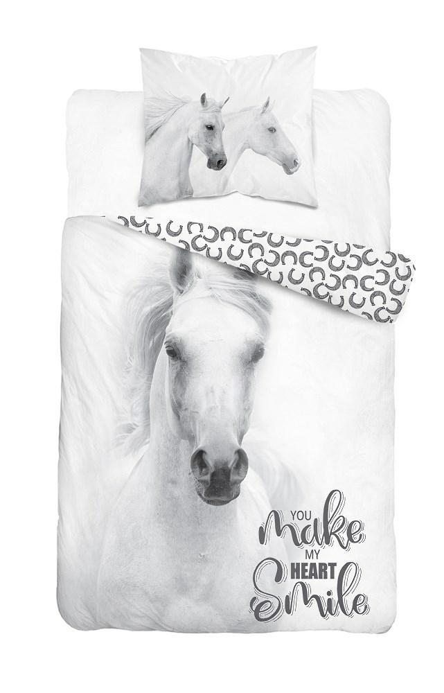 Pościel bawełniana 140×200 koń biały 3864 A poszewka 70×80 panelowa 92