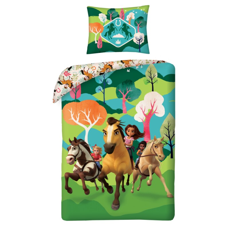 Pościel bawełniana 140×200 Spirit konie zielona poszewka 70×90 Kids 12 Halantex
