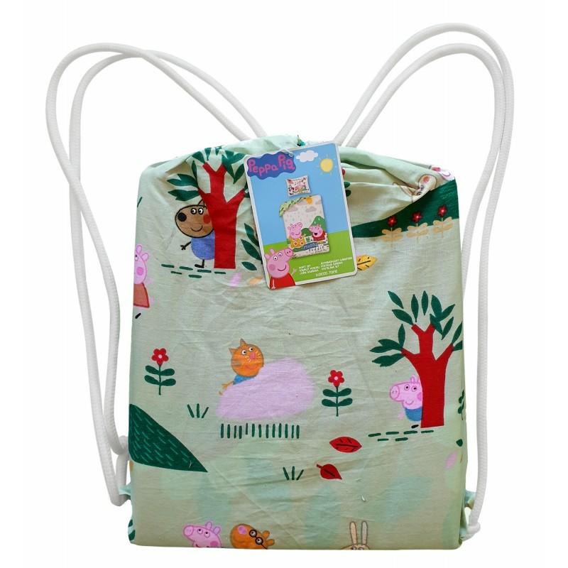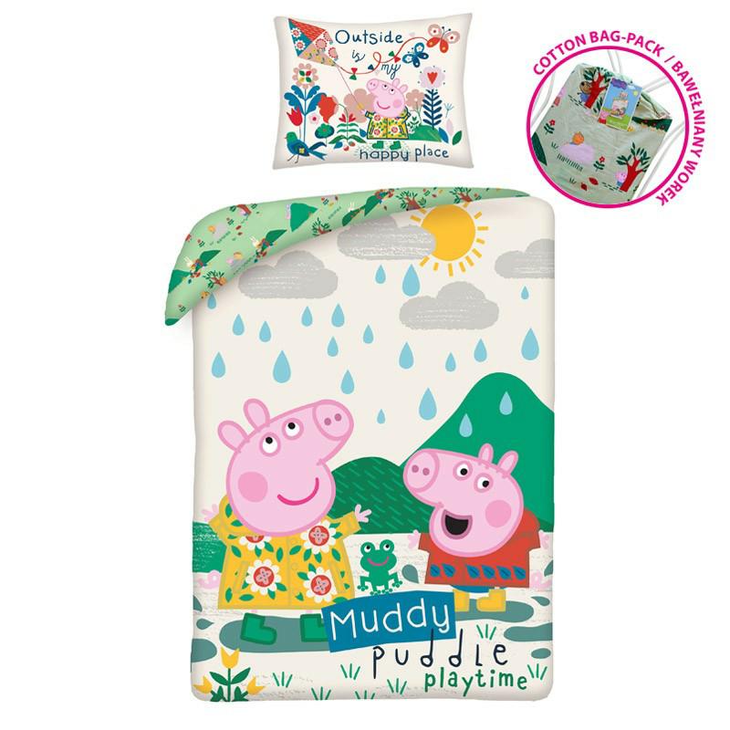 Pościel bawełniana 140×200 Świnka Peppa zielona poszewka 70×90 + worek bawełniany Halantex