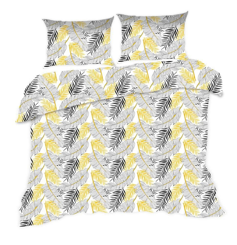 Pościel bawełniana 160×200 1343N biała złote szare liście Classic E24