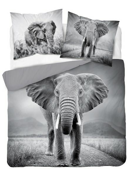 Pościel bawełniana 160×200 Słoń szara młodzieżowa Słonie elephant Holland Natura 2