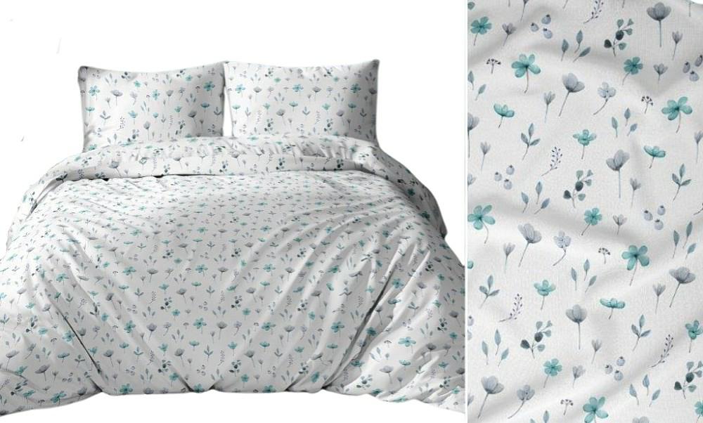 Pościel bawełniana 160×200 biała niebieska kwiaty gałązki 3698 C bawełna Max