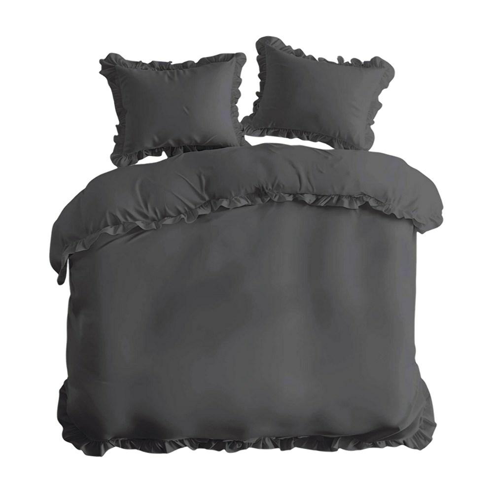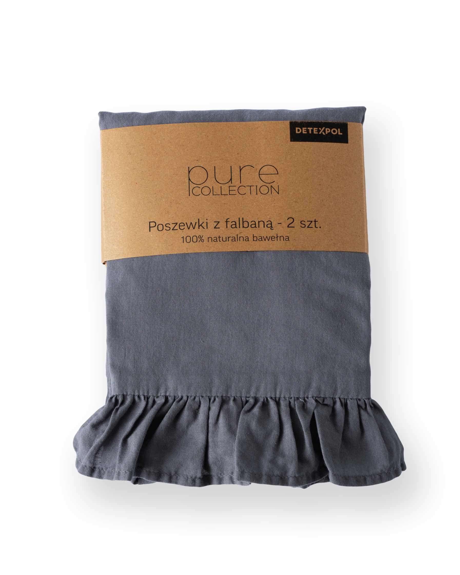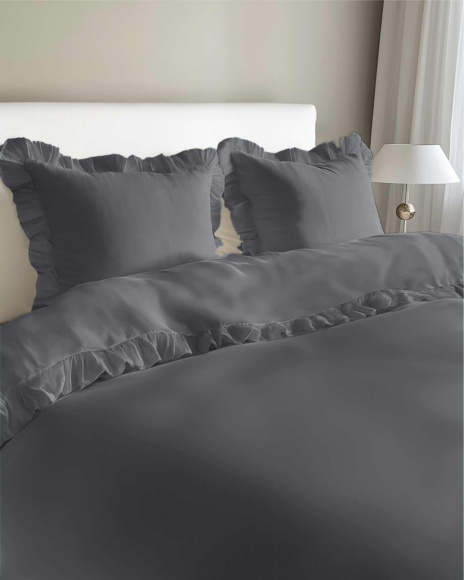 Pościel bawełniana 160×200 grafitowa jednobarwna z falbanką Pure 23