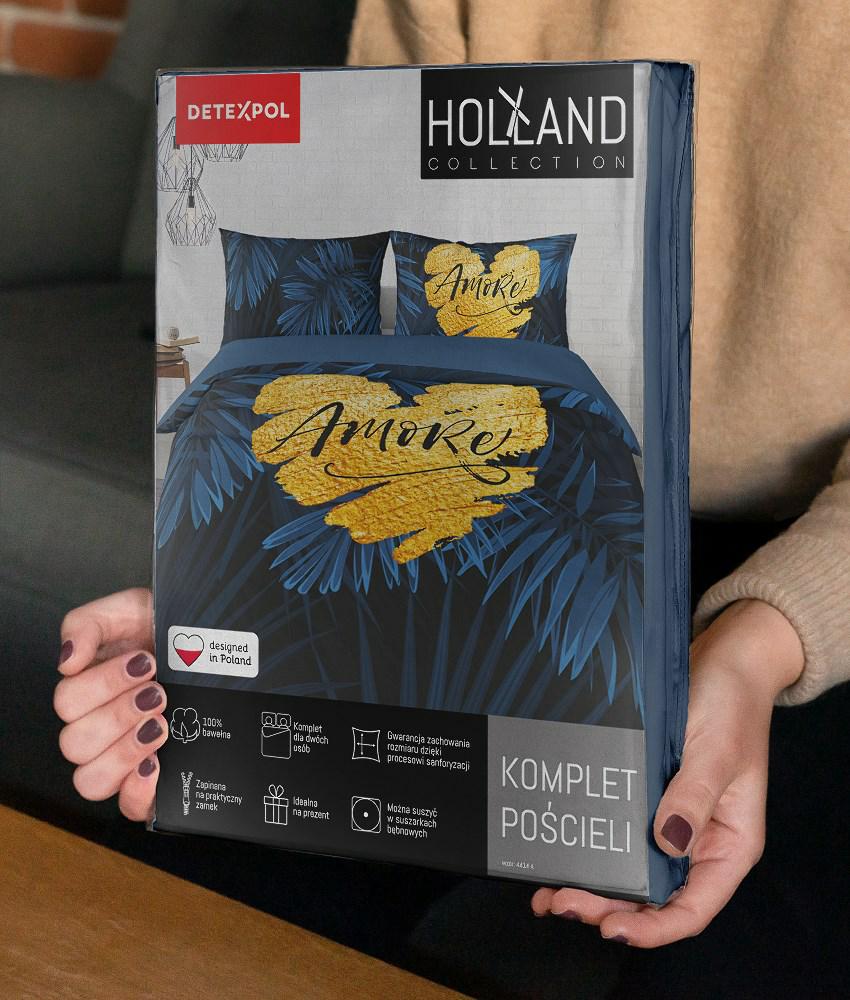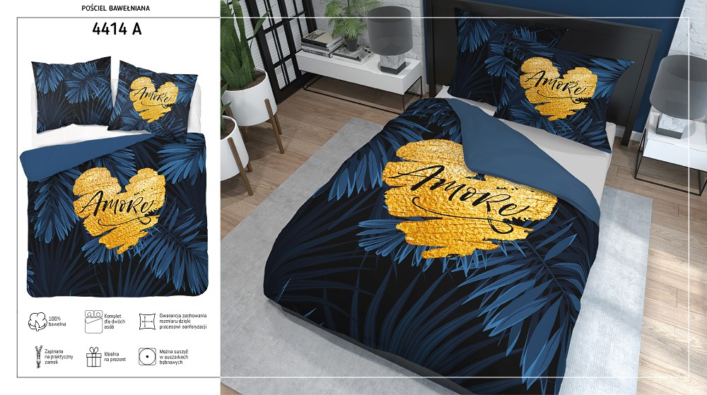 🌿 Pościel bawełniana 160×200 cm granatowa Amore w liście 4414 A Holland 35 – komfort i styl w Twojej sypialni