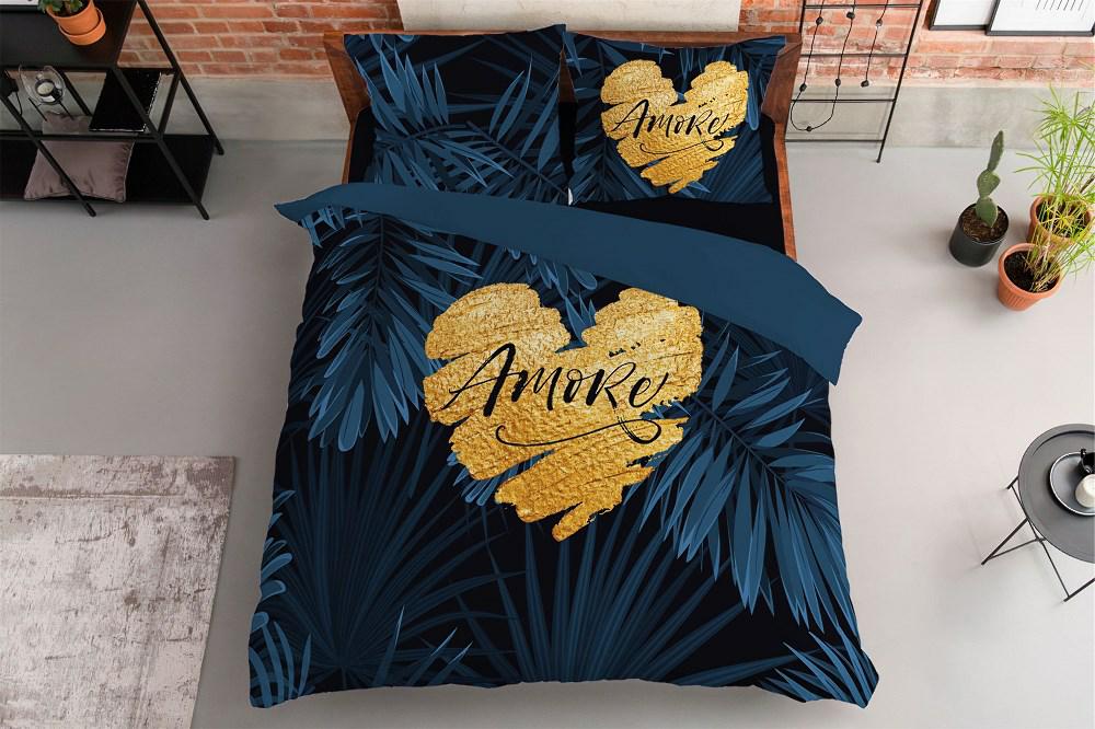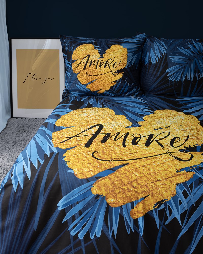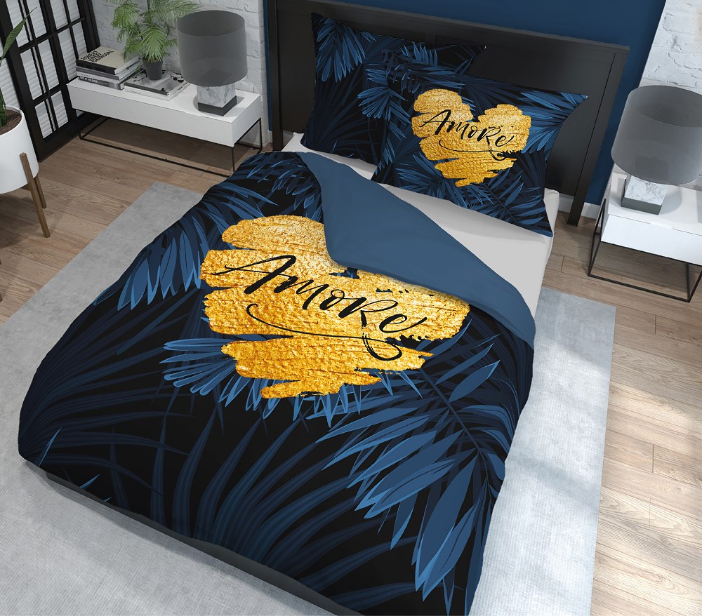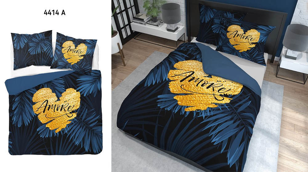 Pościel bawełniana 160×200 granatowa amore w liście 4414 A Holland 35