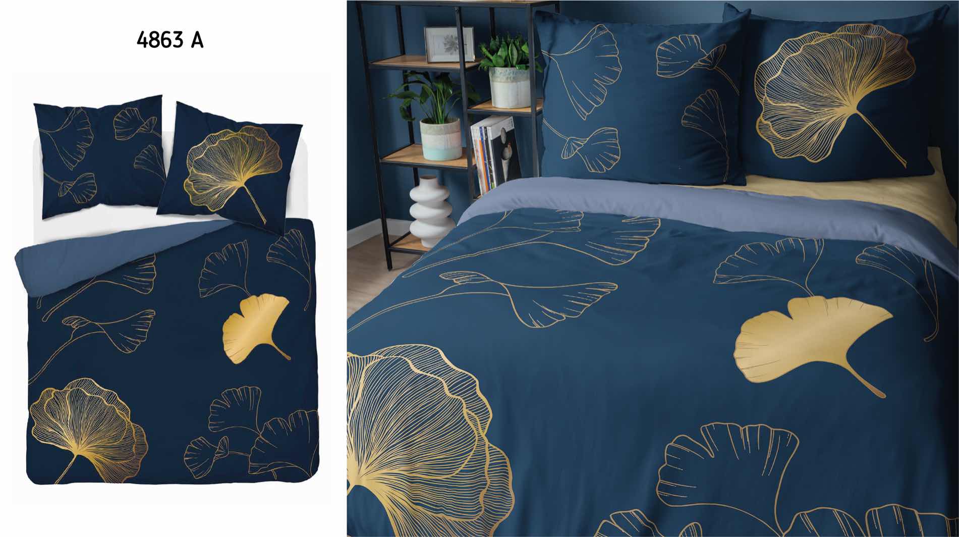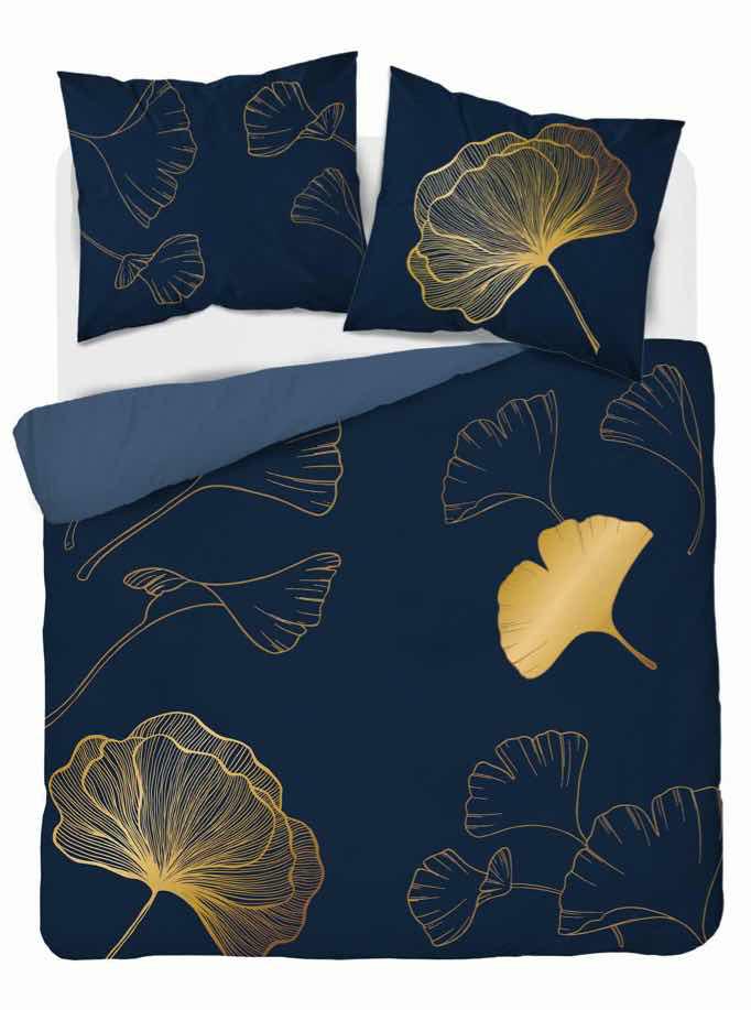 Pościel bawełniana 160×200 granatowa złota liście miłorzębu 4863 A Holland Home 73