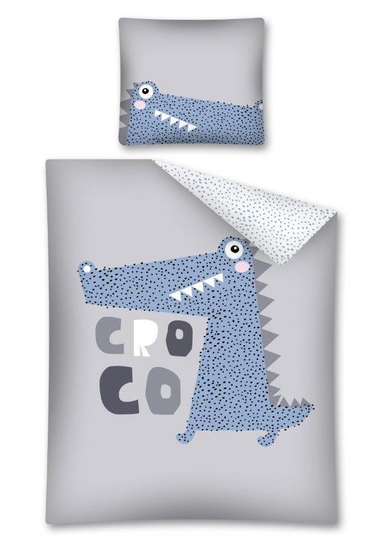 Pościel bawełniana 160×200 Krokodyl niebieski szara biała kropeczki