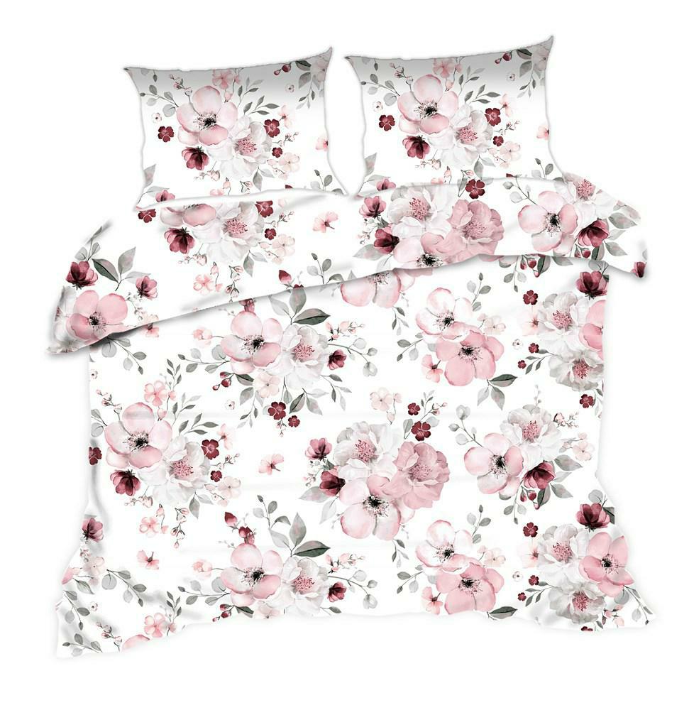 Pościel bawełniana 160×200 kwiaty biała różowa 1474N Classic