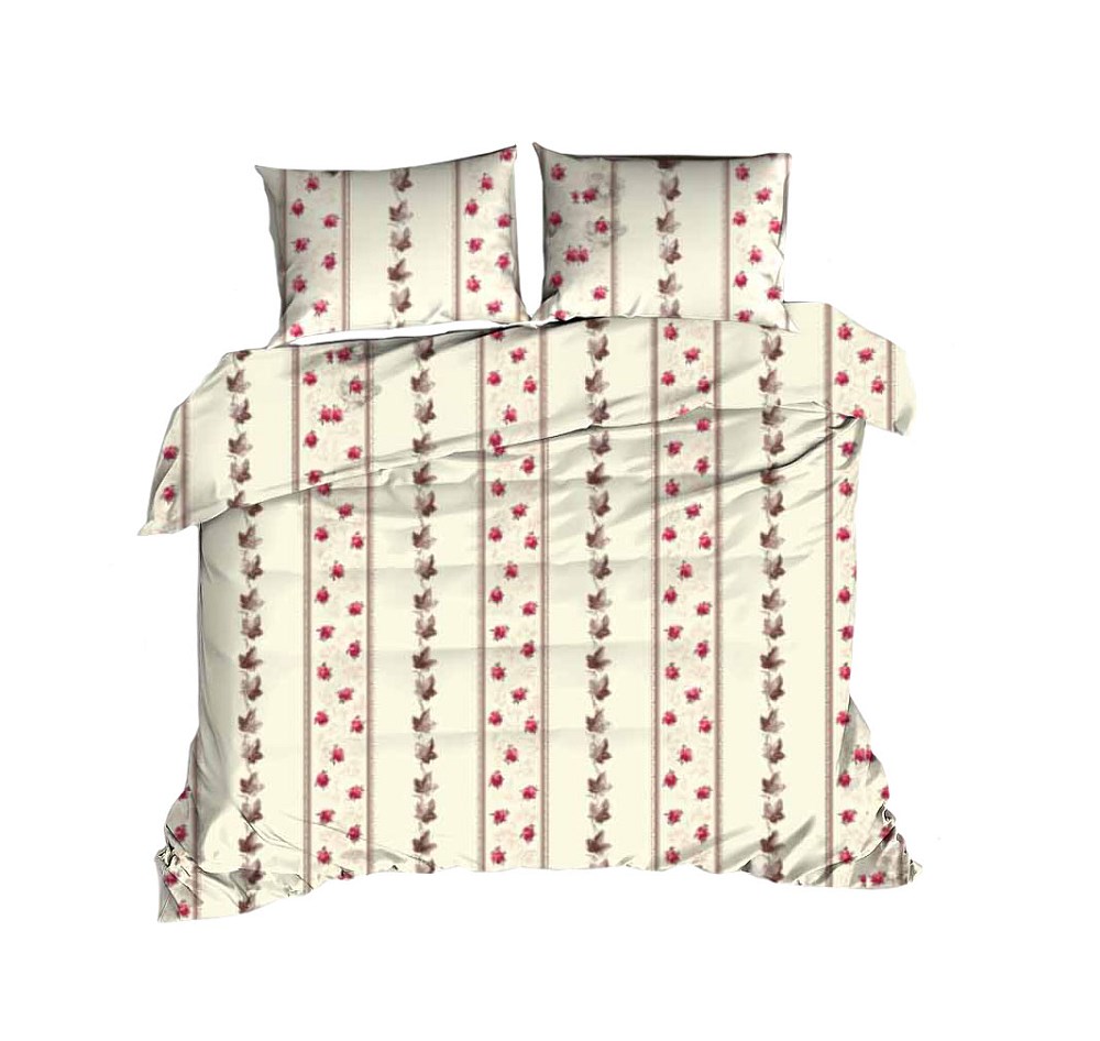 Pościel bawełniana 160×200 kwiaty kremowa czerwona 1602N Classic