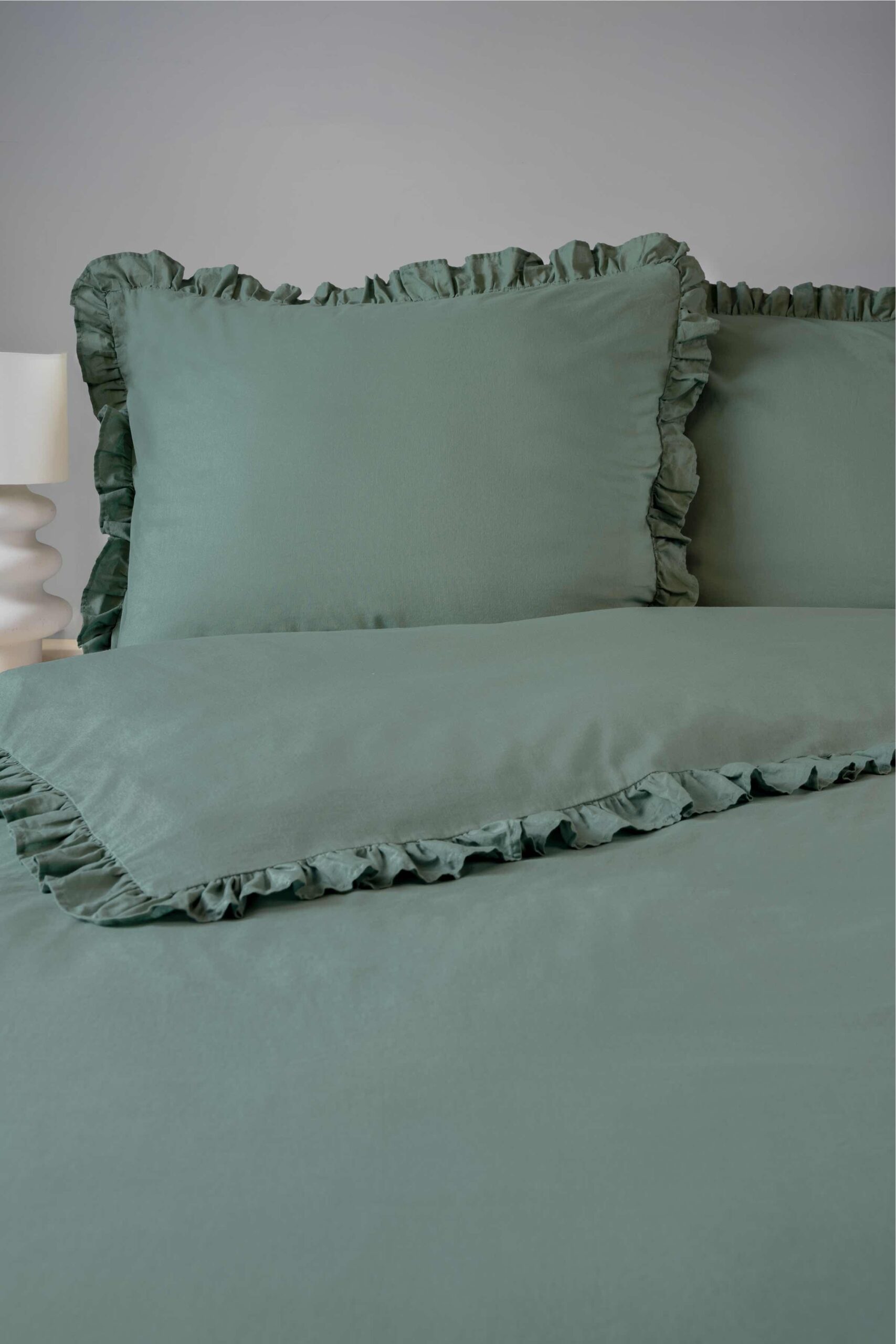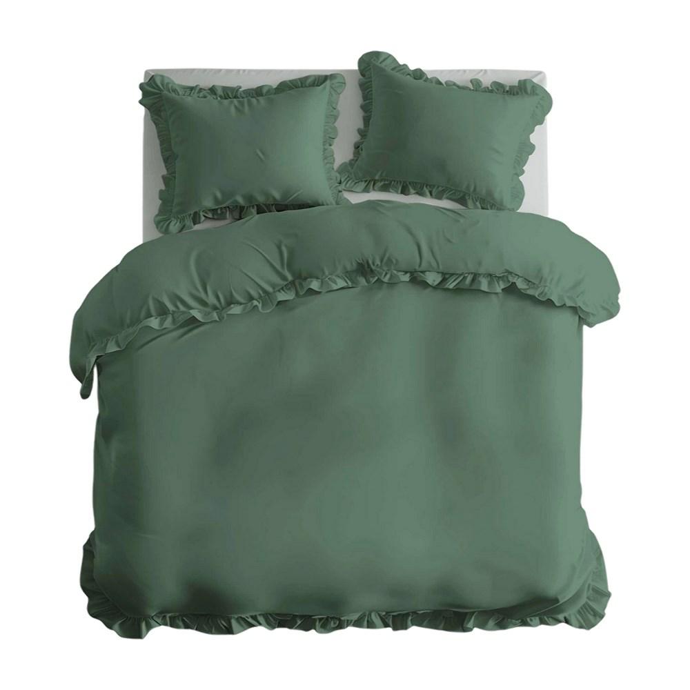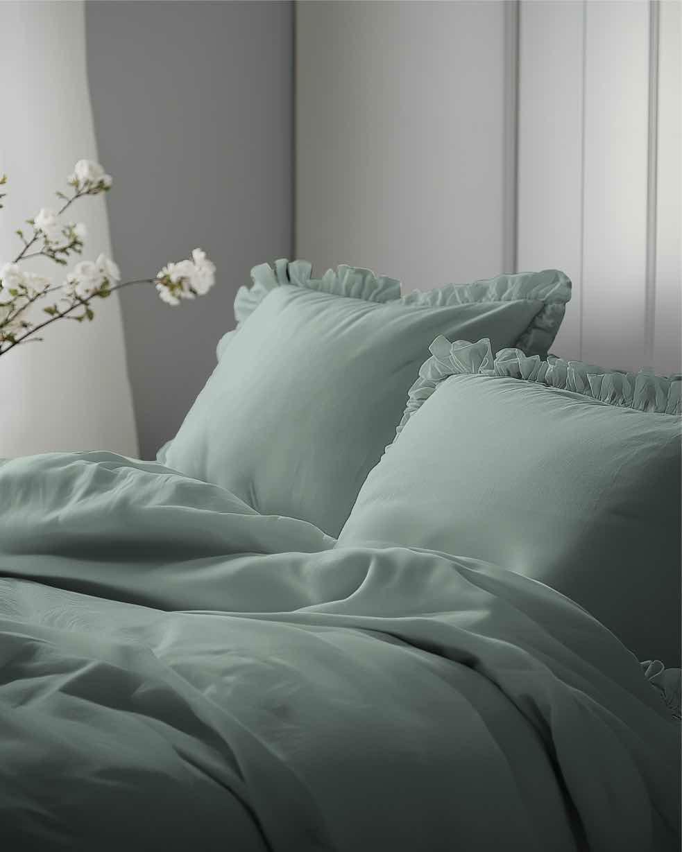 Pościel bawełniana 160×200 miętowa jednobarwna z falbanką Pure 23