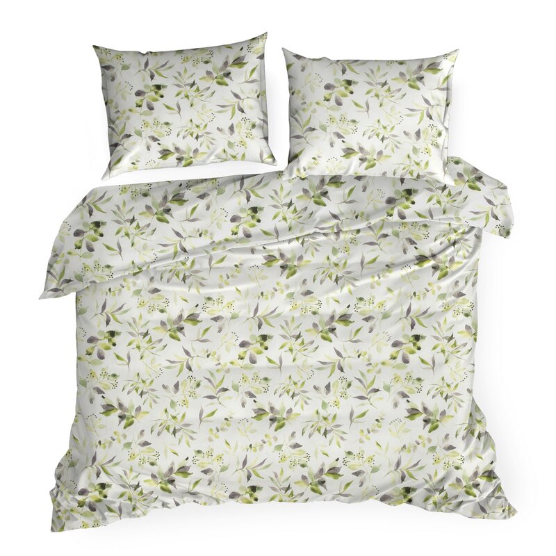 Pościel bawełniana 160×200 Mili biała zielona liście Eurofirany