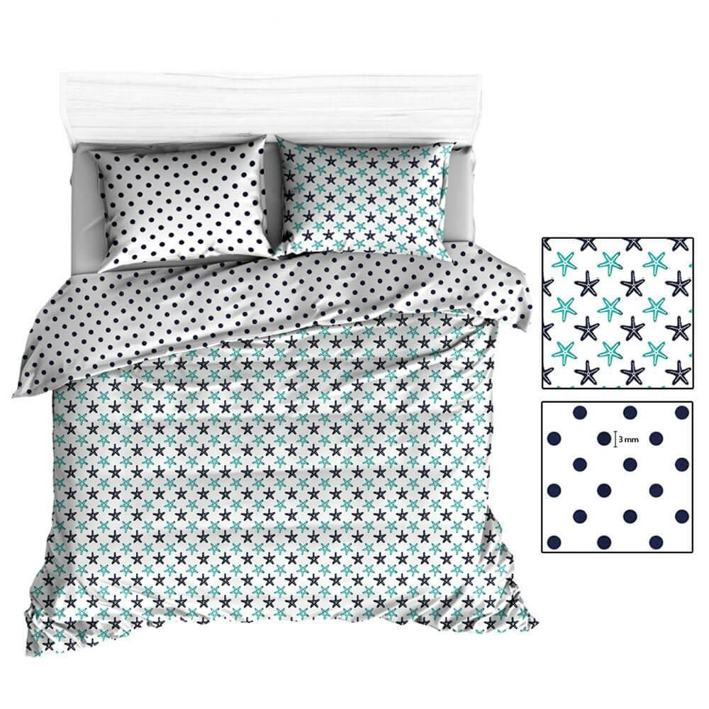 Pościel bawełniana 160×200 R136 biała rozgwiazdy groszki granatowe 38N 205N
