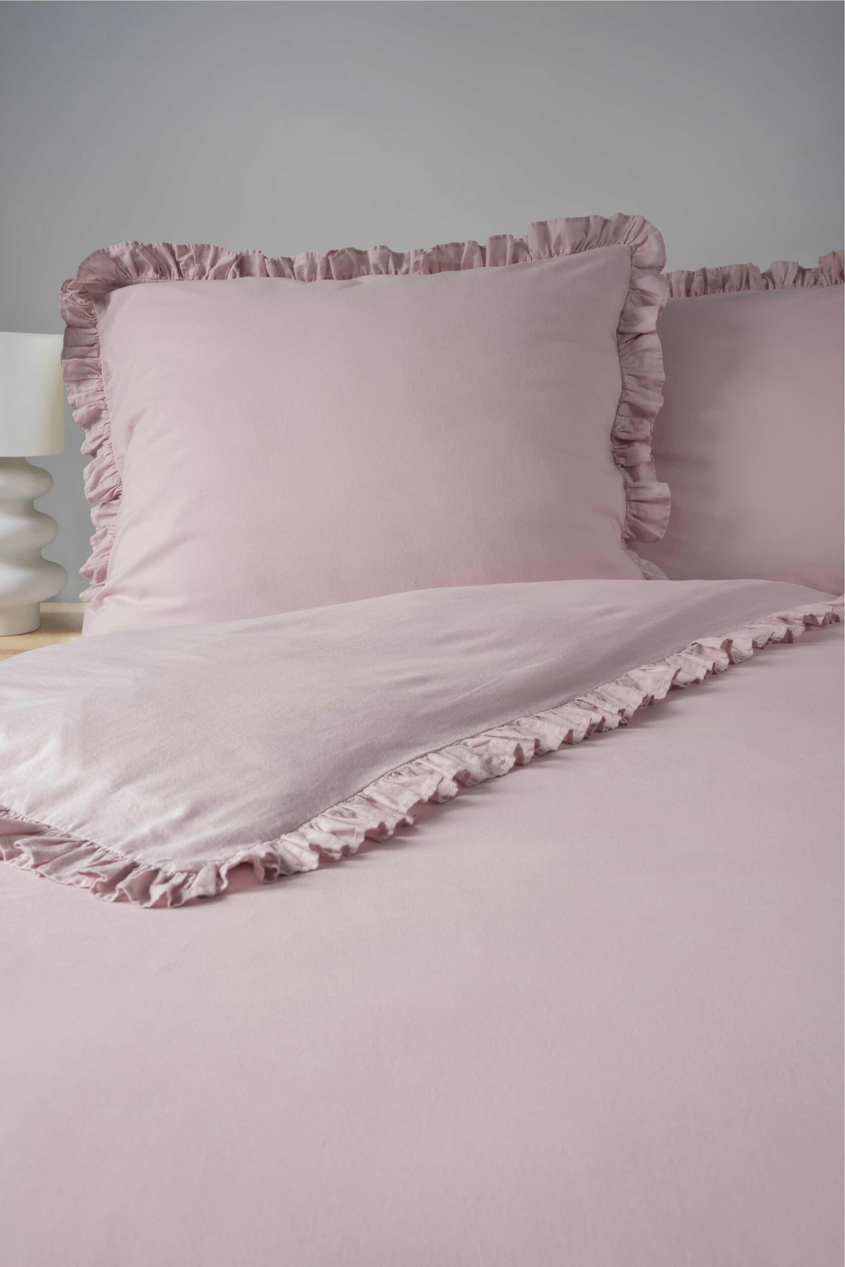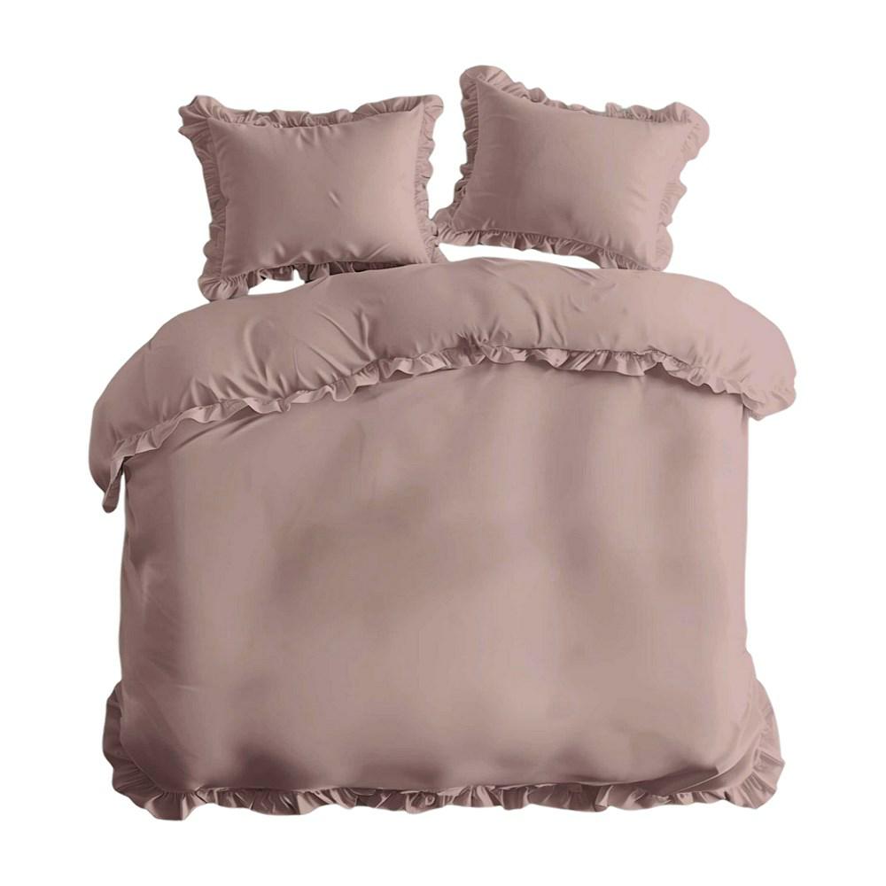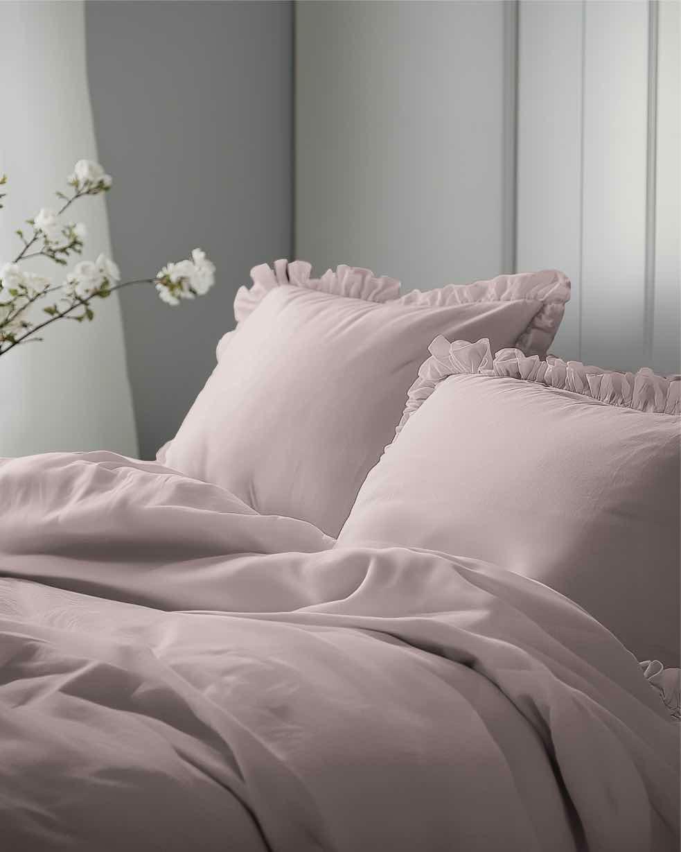 Pościel bawełniana 160×200 różowa jednobarwna z falbanką Pure 23