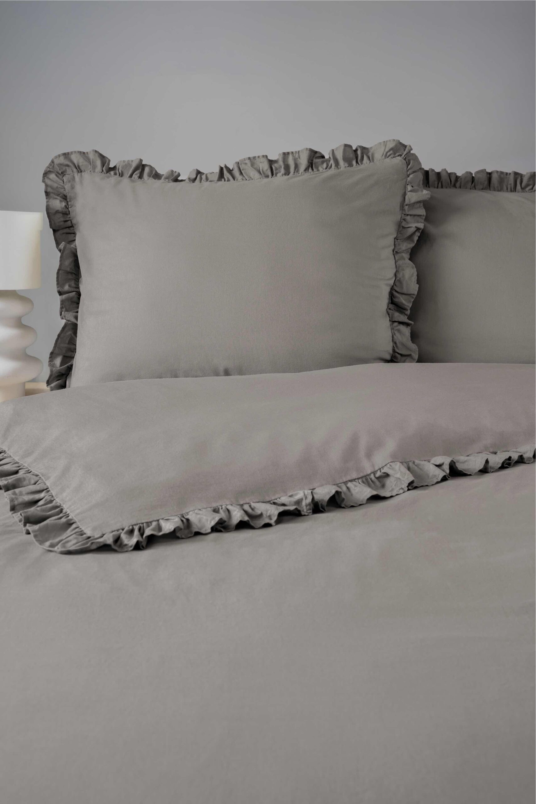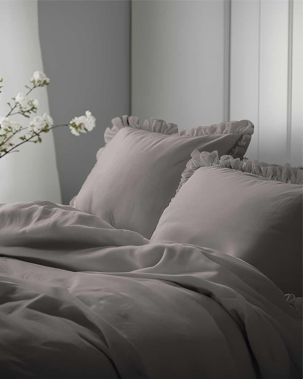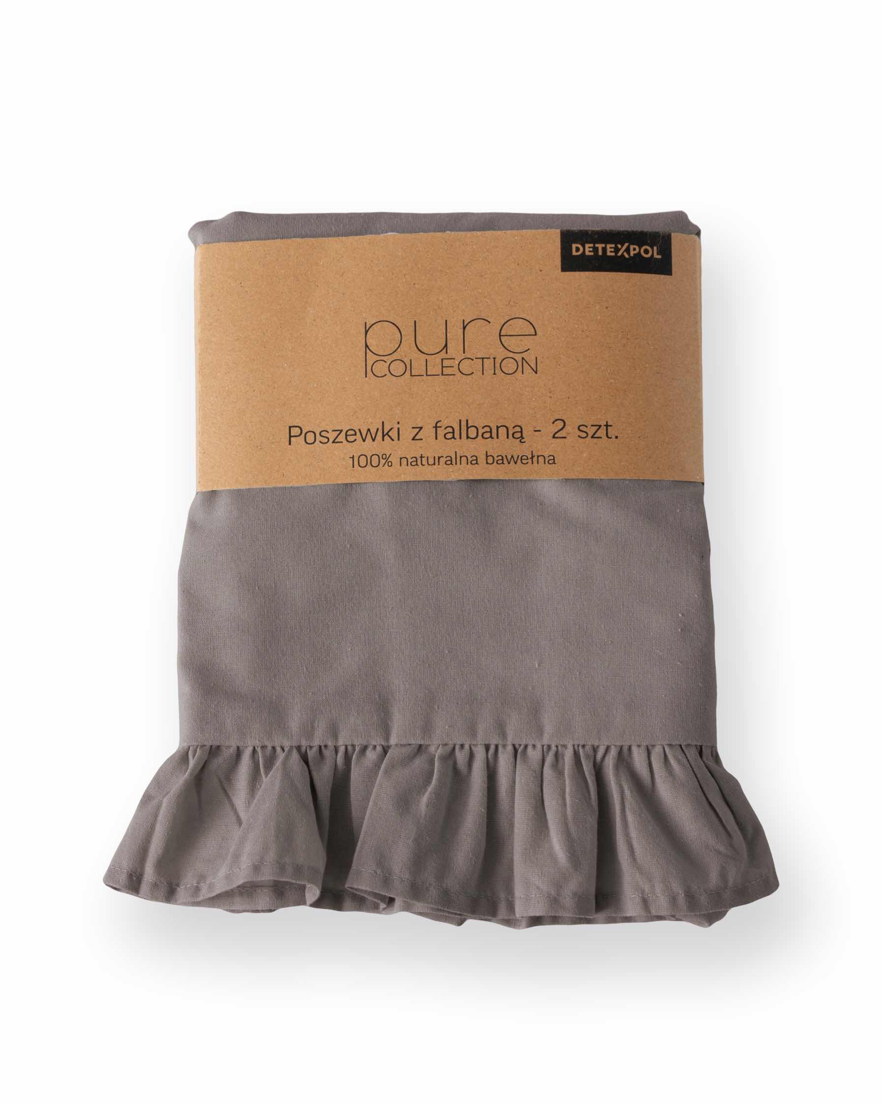 Pościel bawełniana 160×200 szara ciemna jednobarwna z falbanką Pure 23