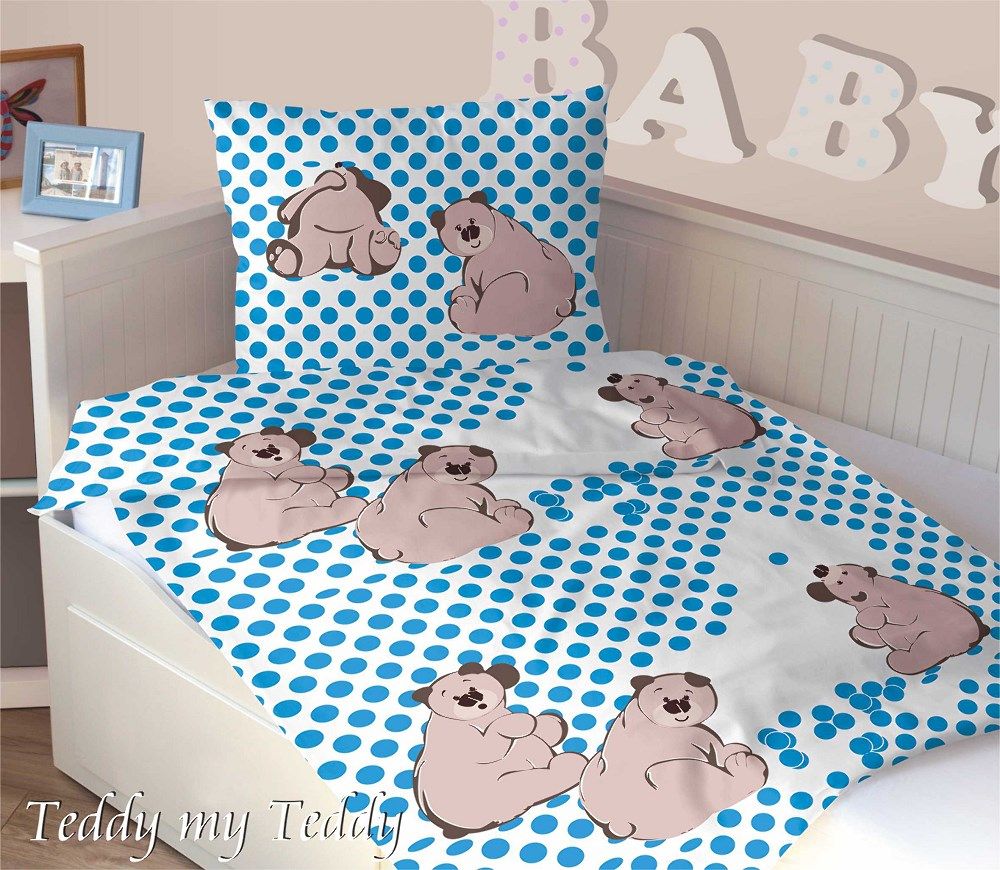 Pościel bawełniana 160×200+70×80 G Teddy Niebieski Greno