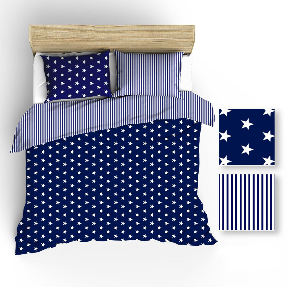 Pościel bawełniana 200×220 R006 biała granatowa gwiazdki paski 51N 52N