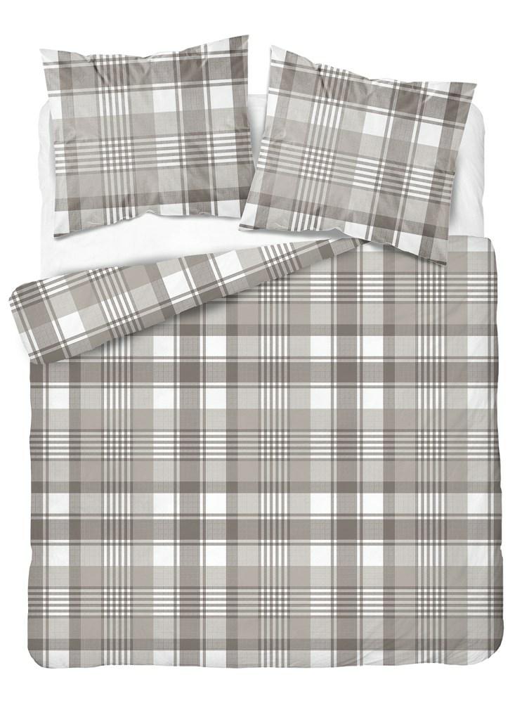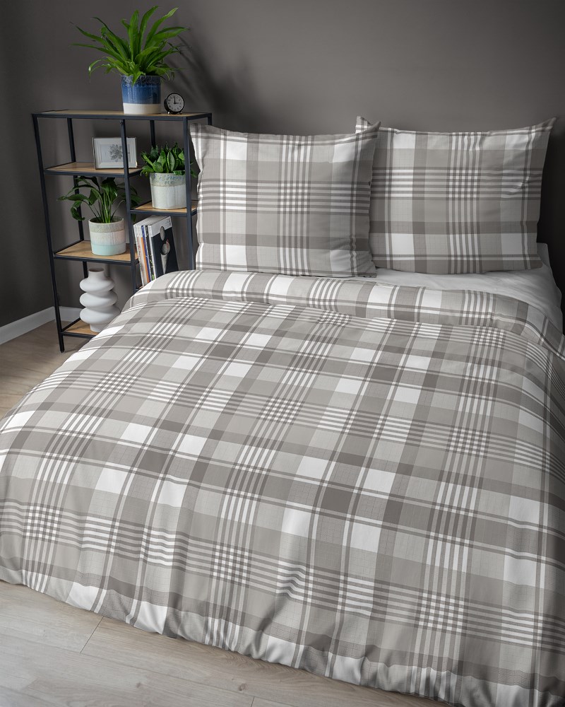 Pościel bawełniana 220×200 beżowa biała kratka Bawełna