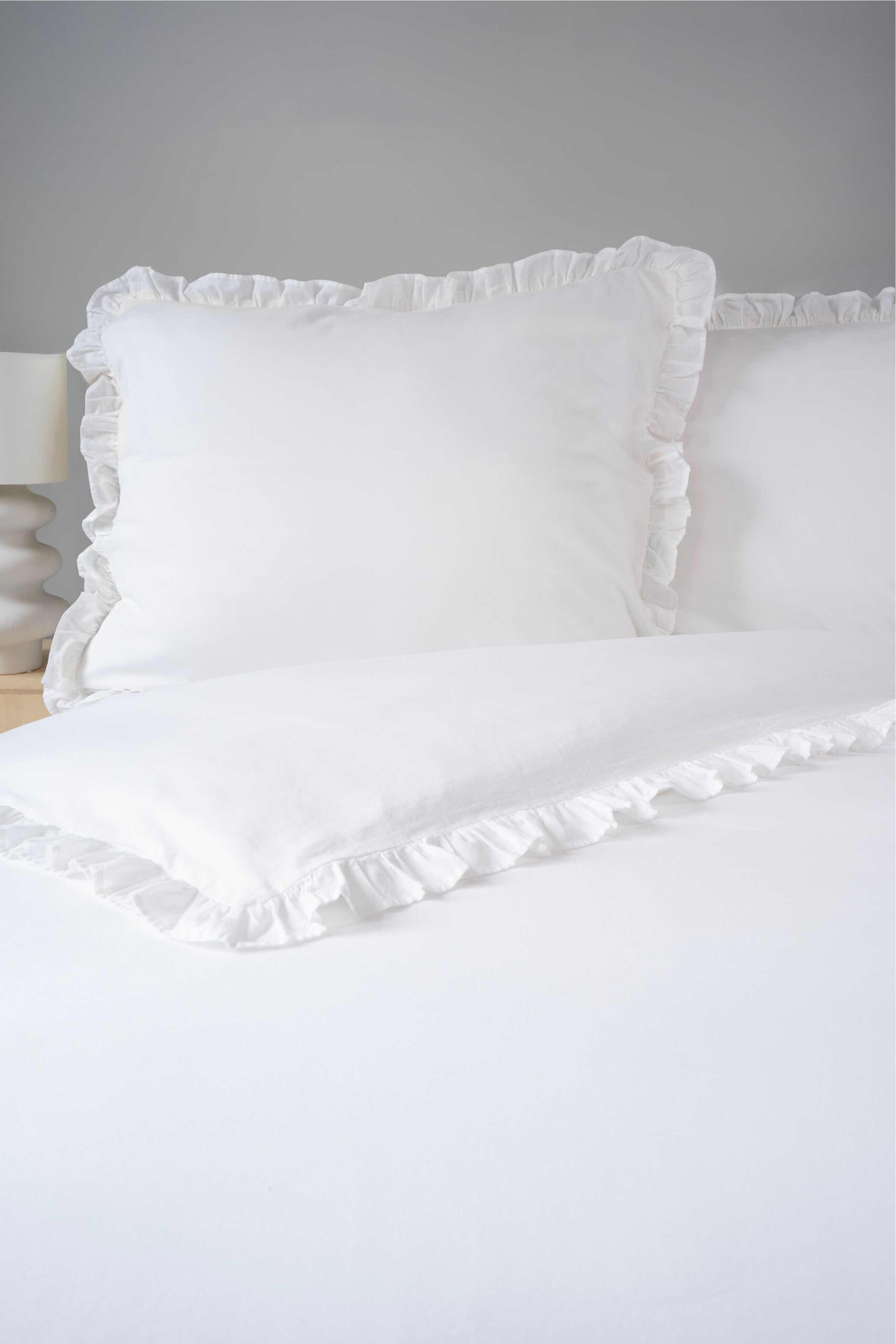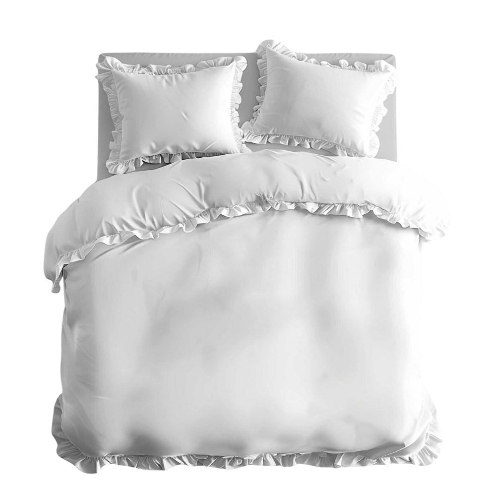 Pościel bawełniana 220×200 biała jednobarwna z falbanką Pure 23