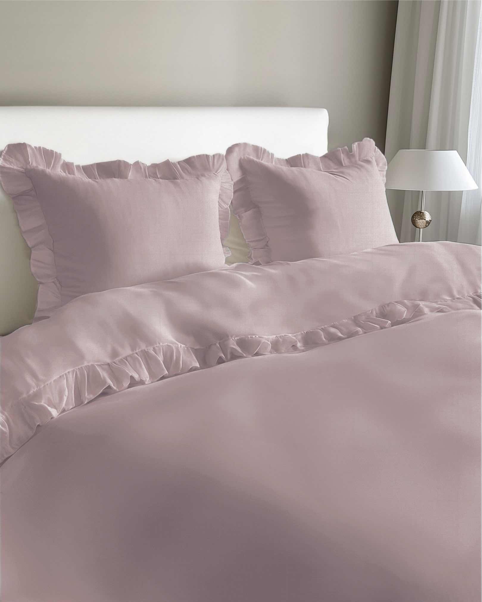 Pościel bawełniana 220×200 różowa jednobarwna z falbanką Pure 23