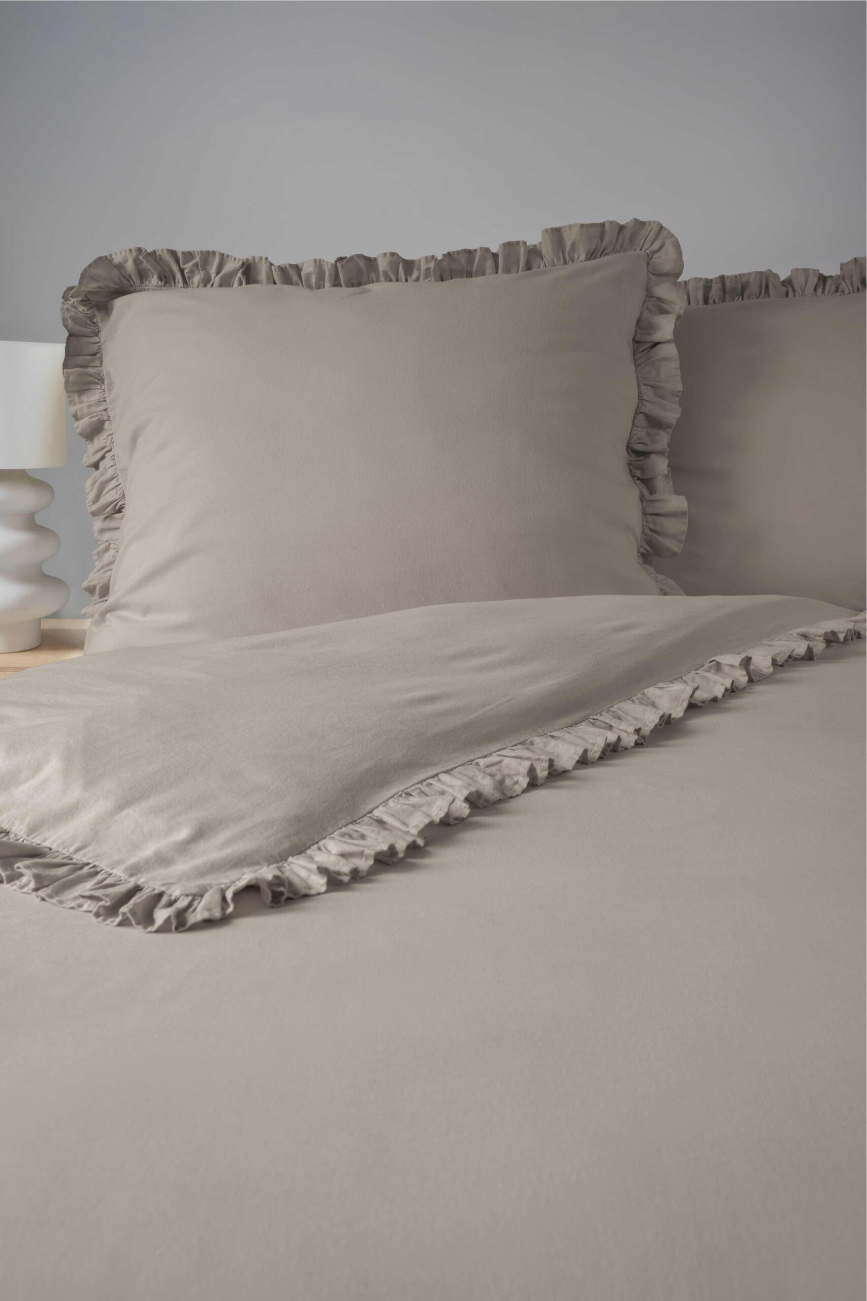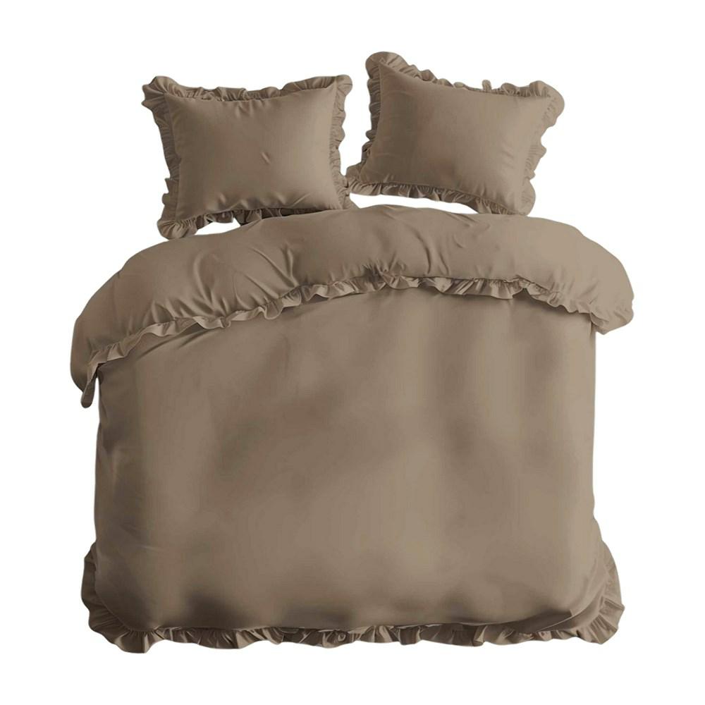 Pościel bawełniana 220×200 taupe jednobarwna z falbanką Pure 23