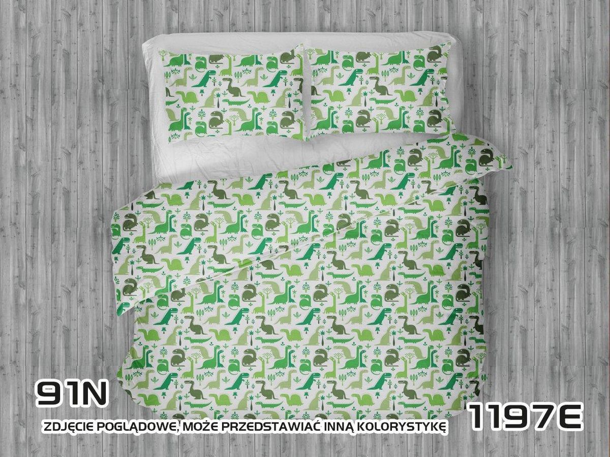 Pościel bawełniana 90×120 biała Dinozaury zielone oliwkowe