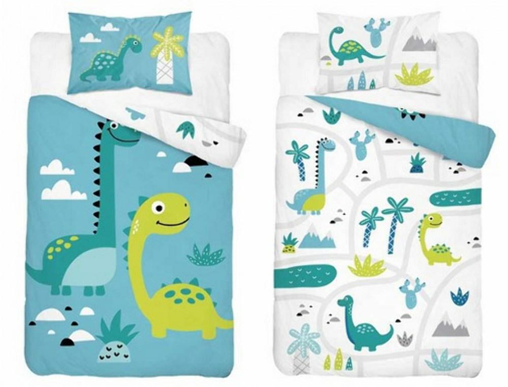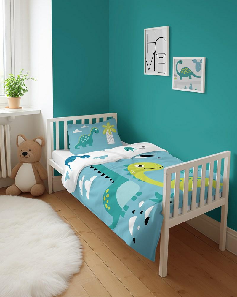Pościel bawełniana 90×120 5135 A Dinozaury niebieska zielona dziecięca do łóżeczka jedna poszewka 40×60 Mayamoo 26