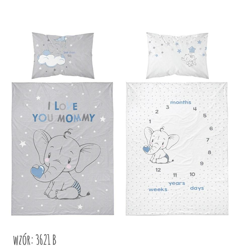 Pościel bawełniana 90×120 Słonik mam już tyle lat miesięcy i dni niebieska szara dziecięca Kids