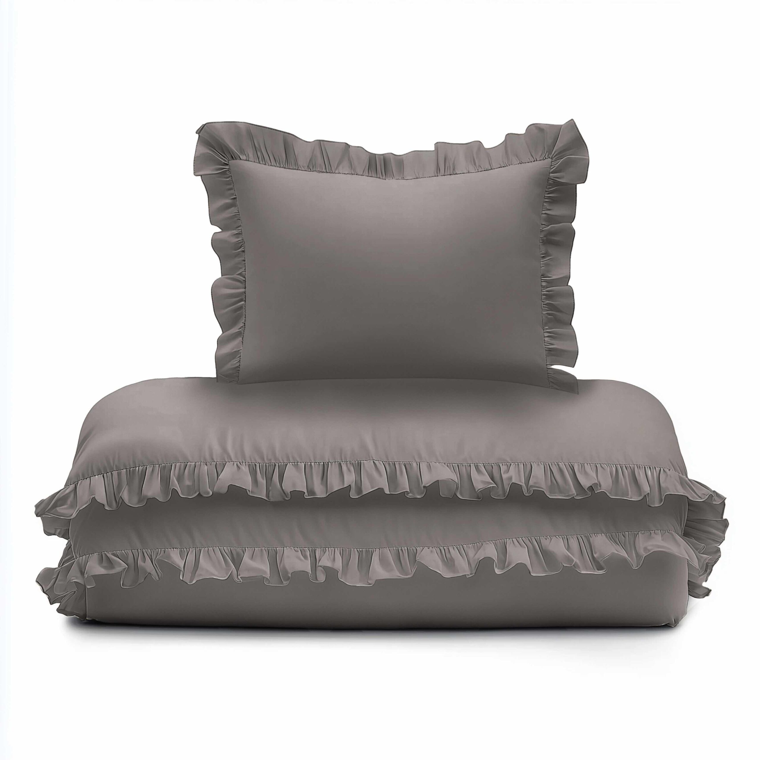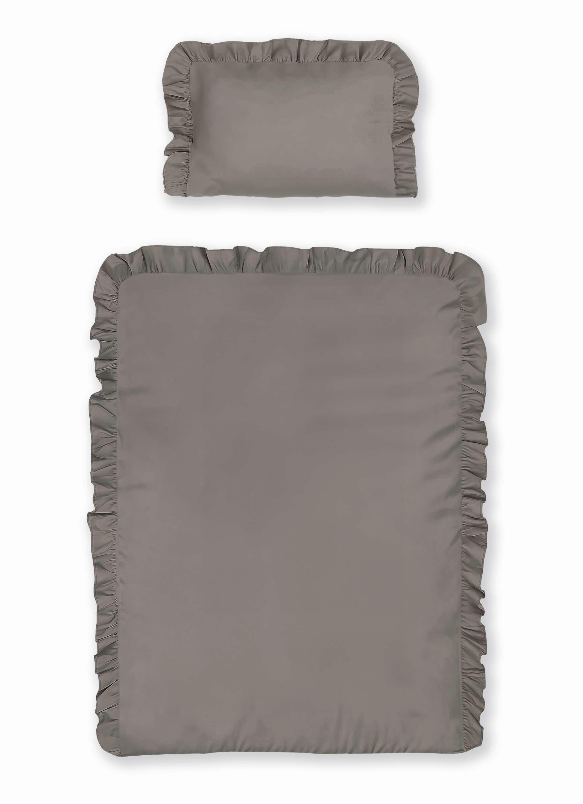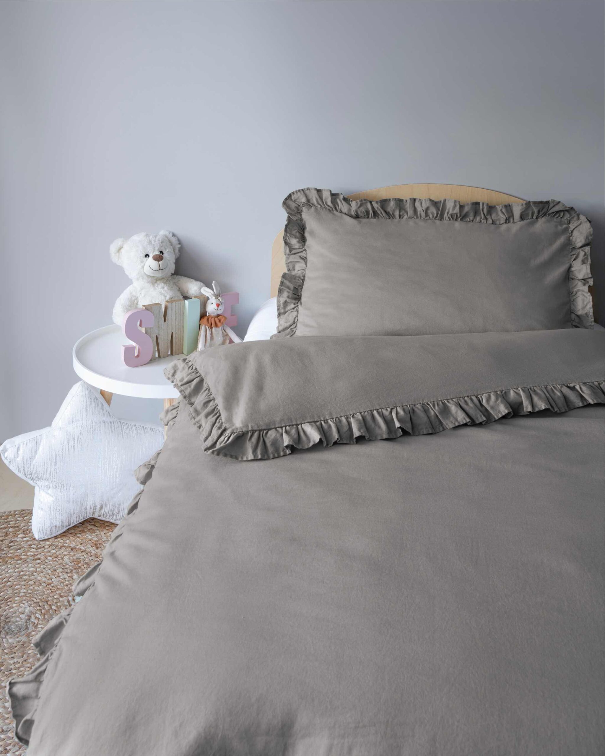 Pościel bawełniana 90×120 szara ciemna dziecięca jednobarwna z falbanką Mayamoo 35