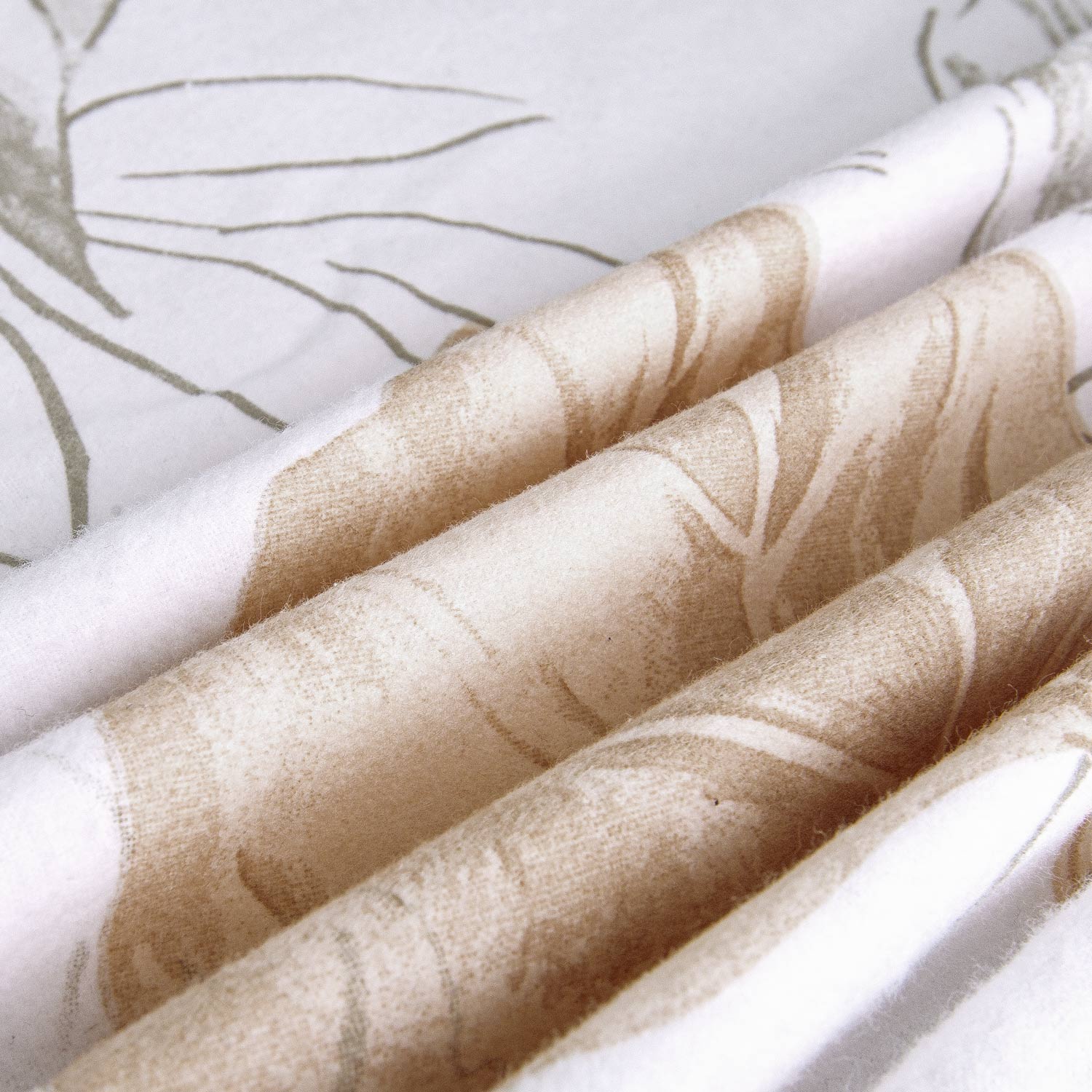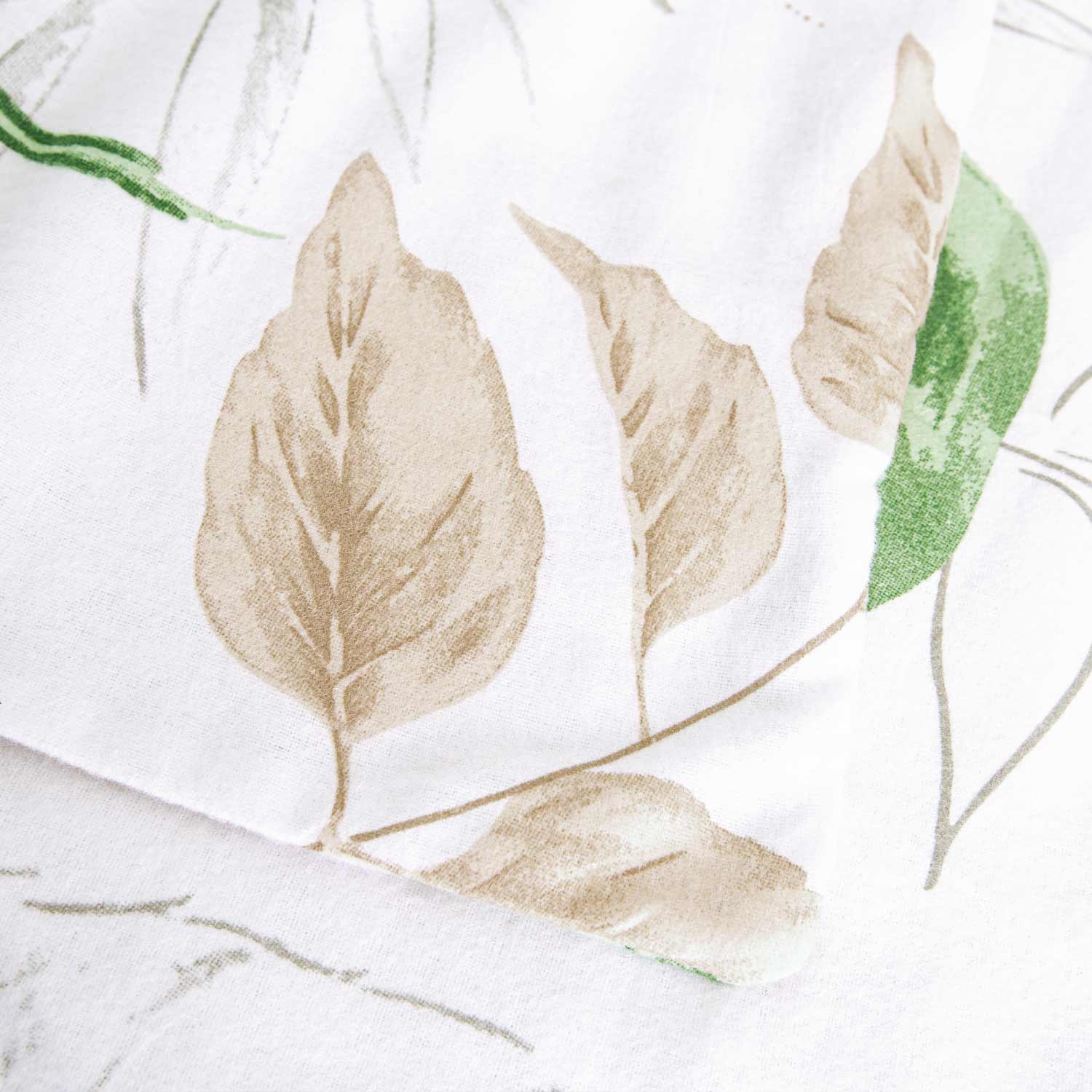 Pościel flanelowa 140×200 31505/2 biała beżowa zielona liście z jedną poszewką Flanelove