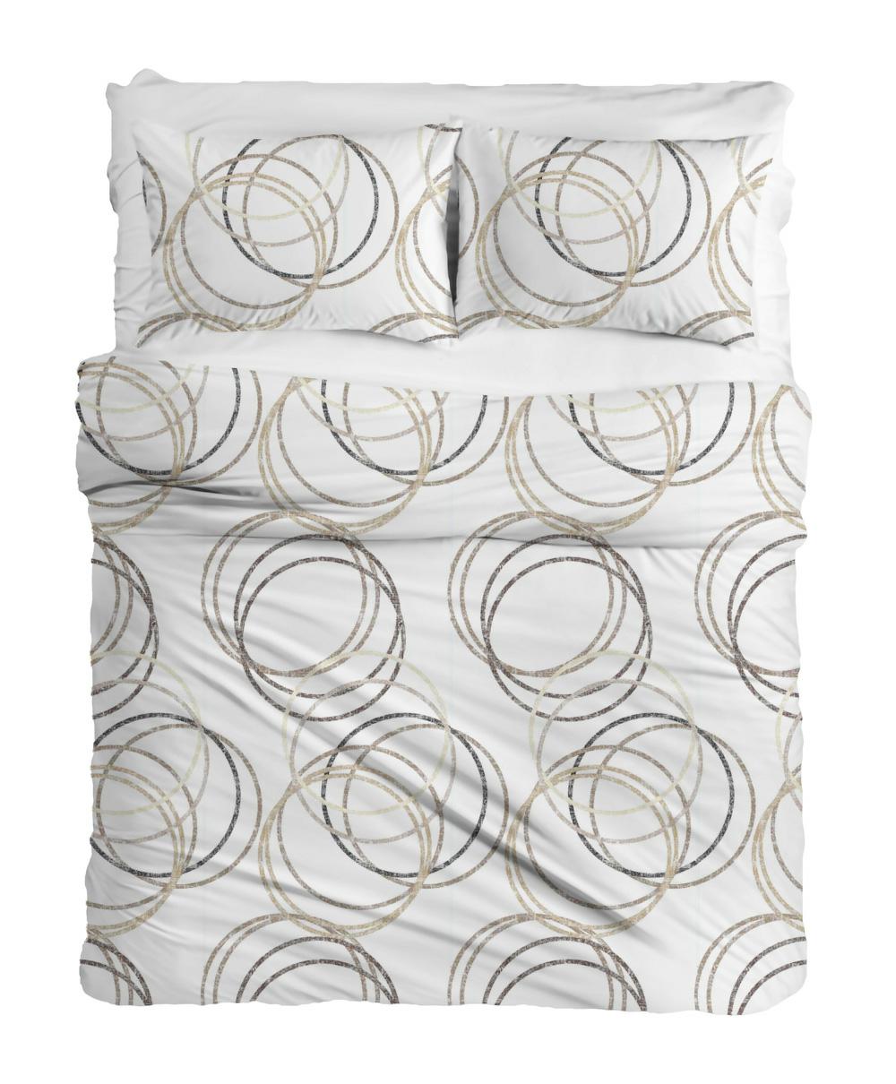 Pościel flanelowa 220×200 F-80A Koła biała bordowa beżowa geometria