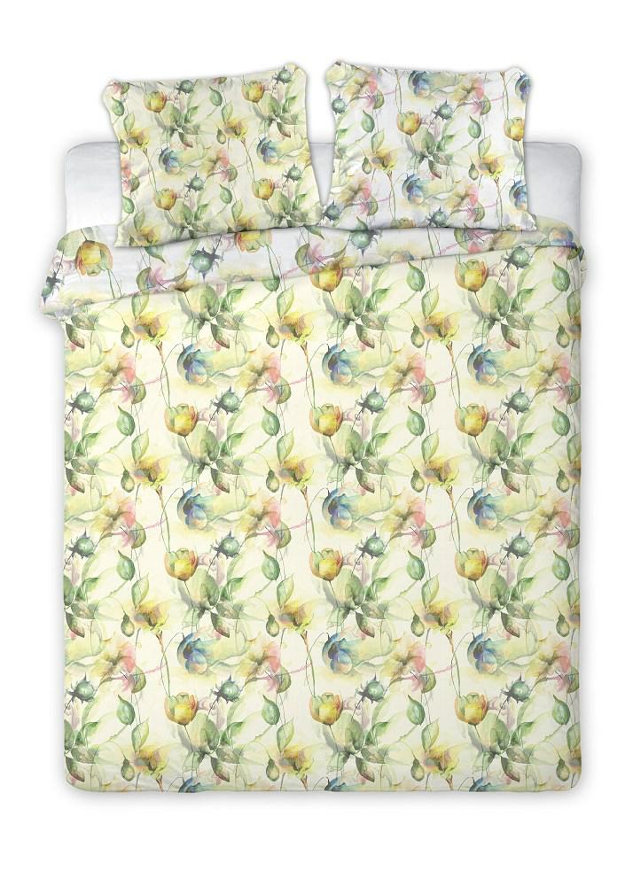 Pościel satynowa 140×200 Aquarell malowane kwiaty kremowa dwustronna