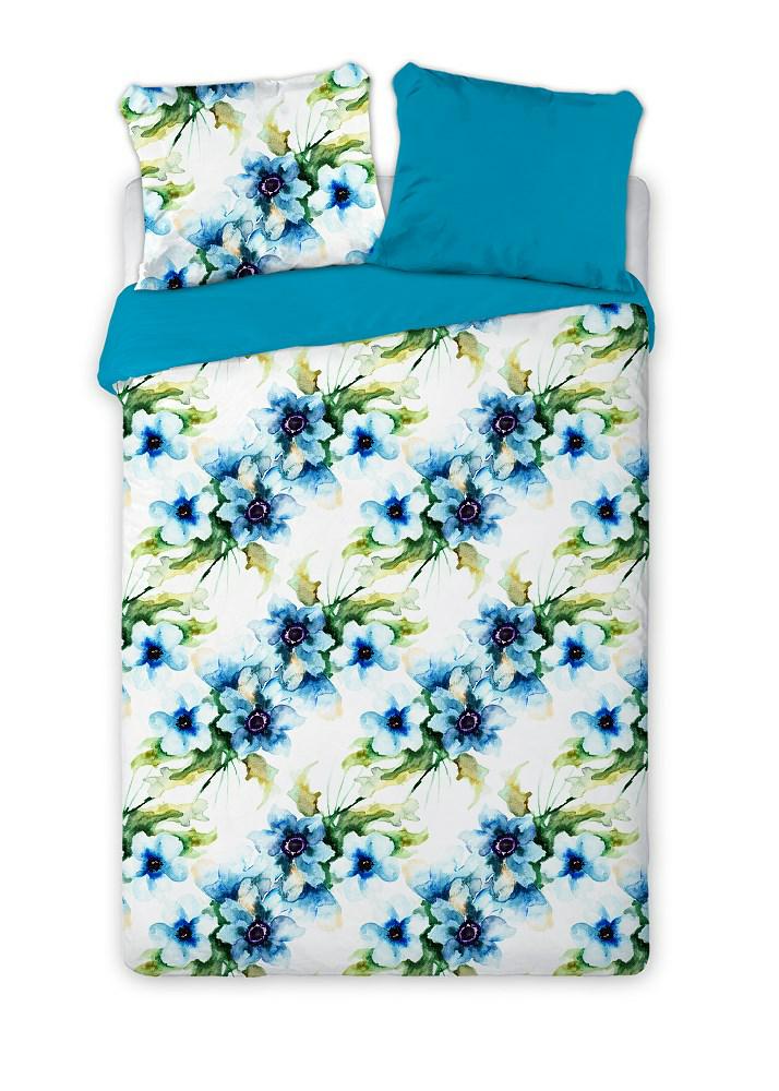 Pościel satynowa 140×200 Aquarell malowane kwiaty niebieska dwustronna 011
