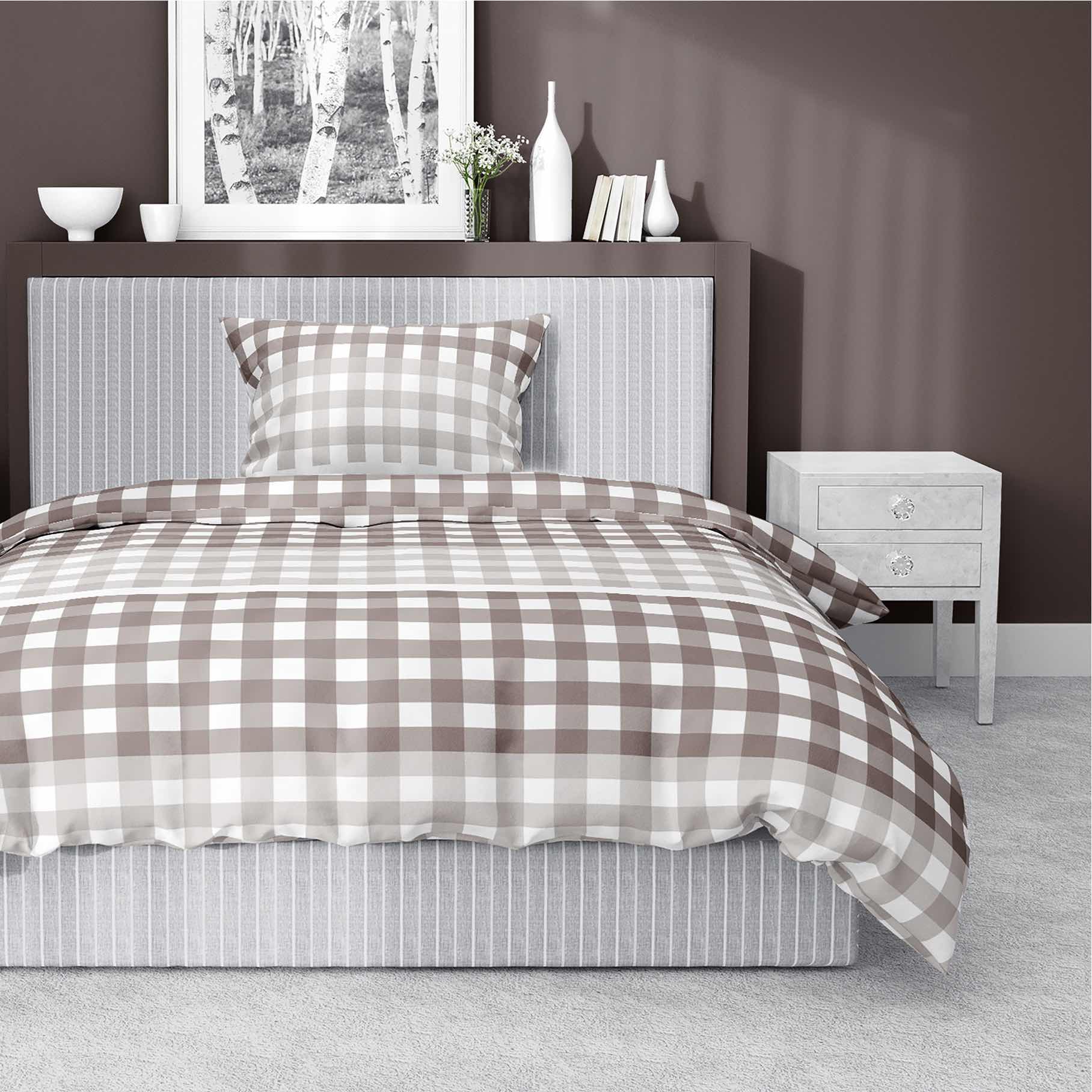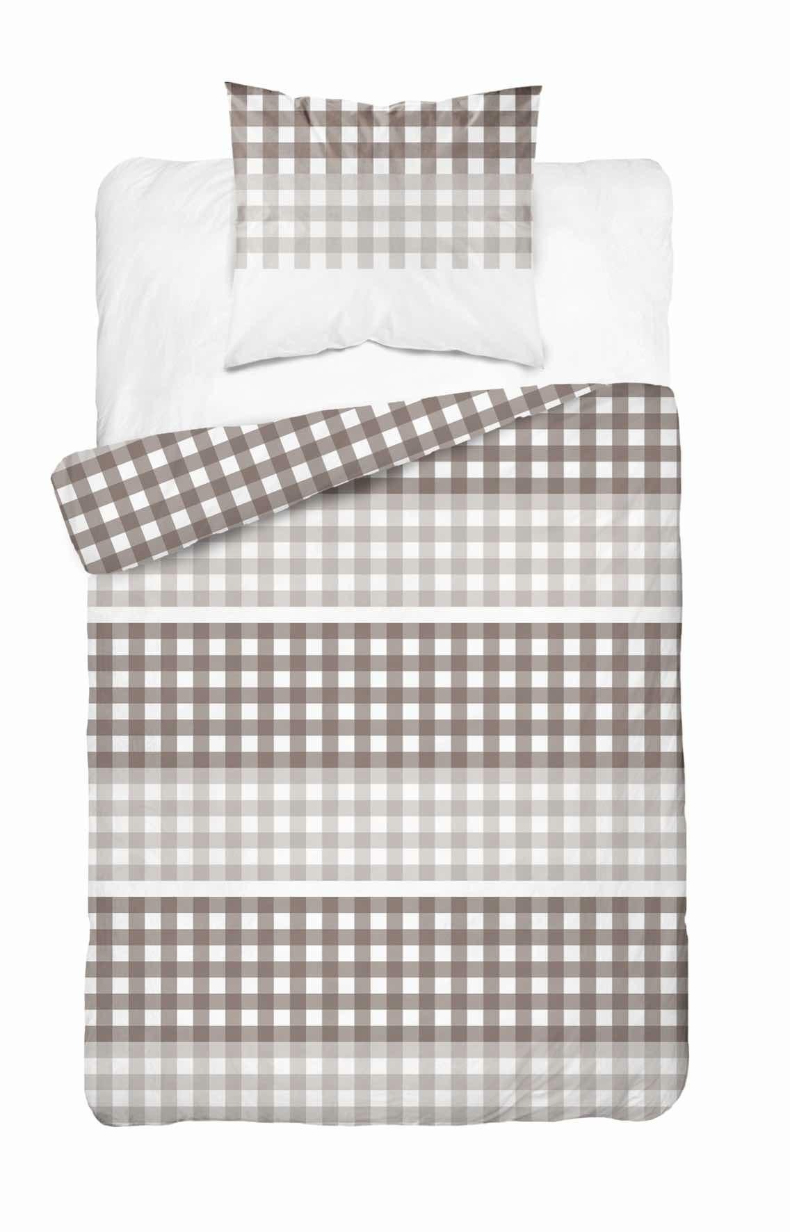 Pościel satynowa 140×200 beżowa kratka z jedną poszewką Home Satin 80