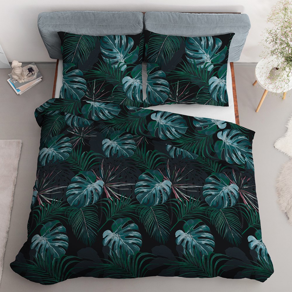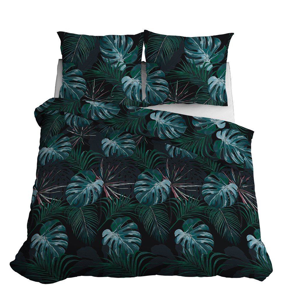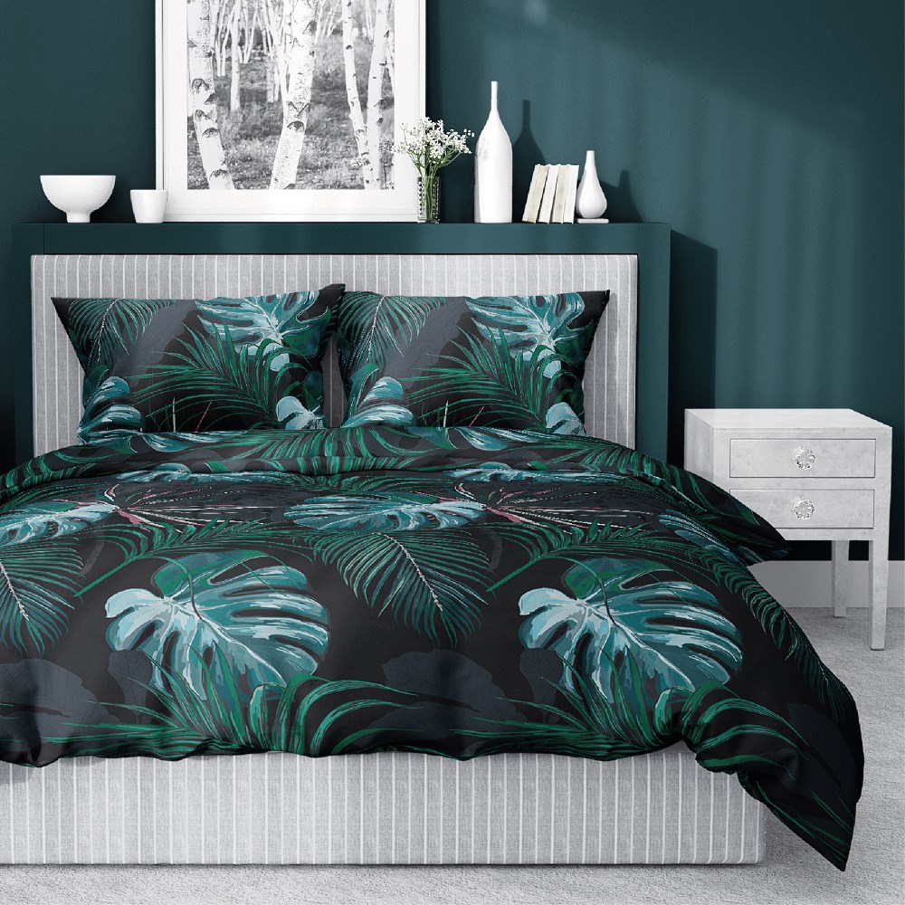 Pościel satynowa 140×200 czarna z turkusowymi liśćmi – Home Satin 4680 B