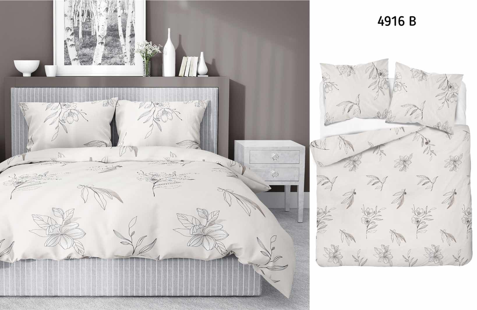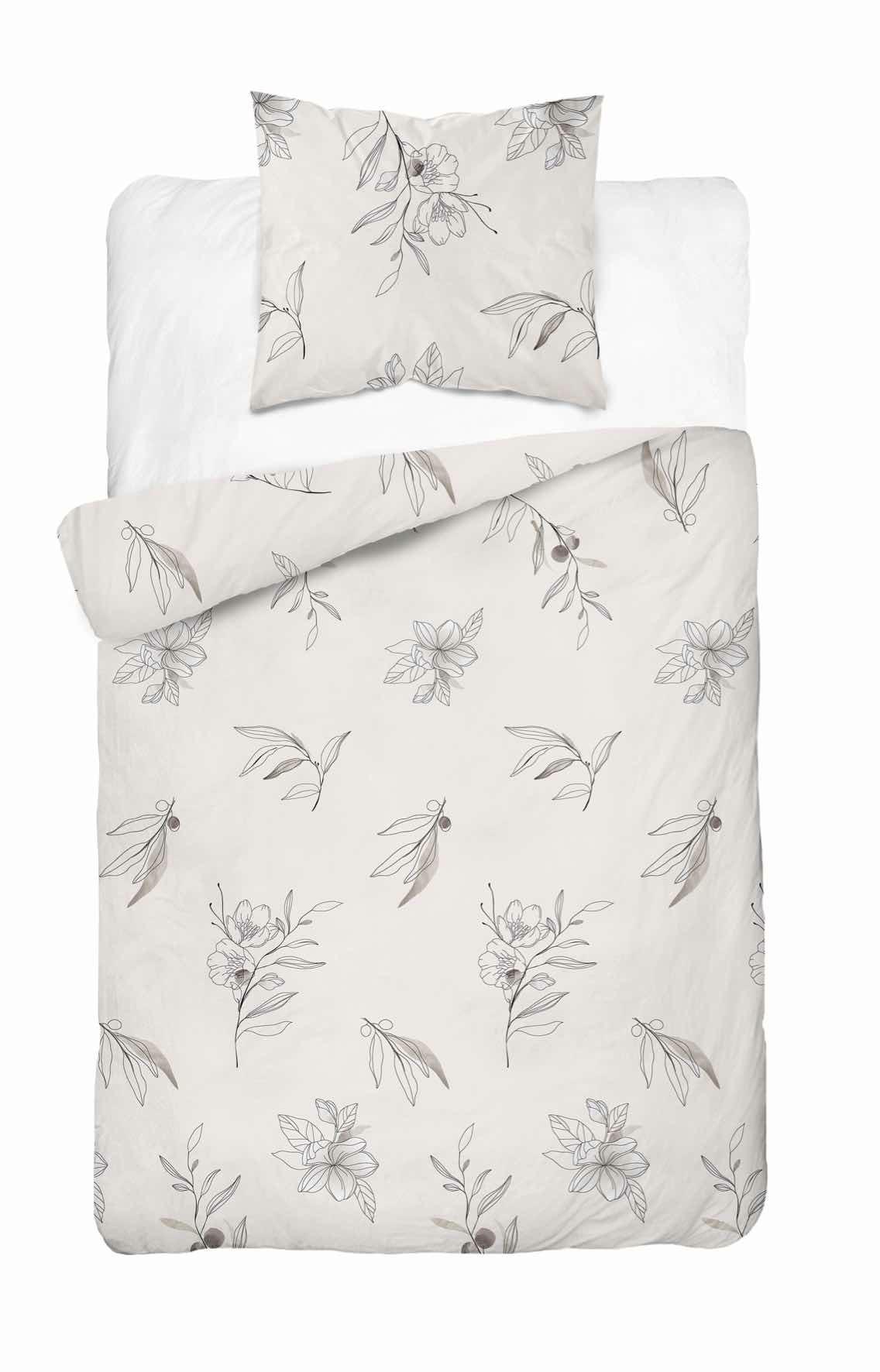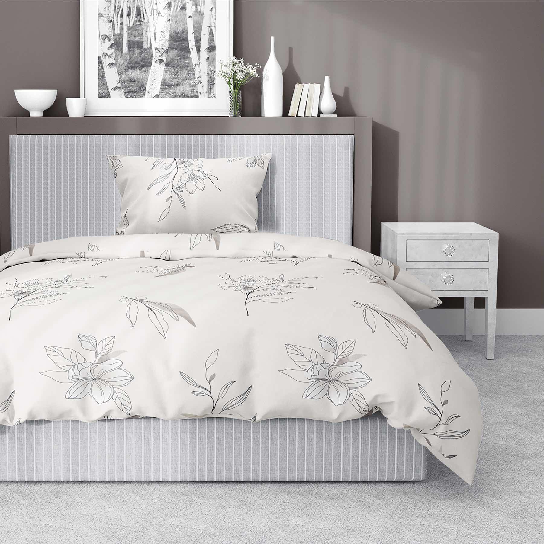 Pościel satynowa 140×200 kremowa kwiaty 4916 B z jedną poszewką Home Satin 80