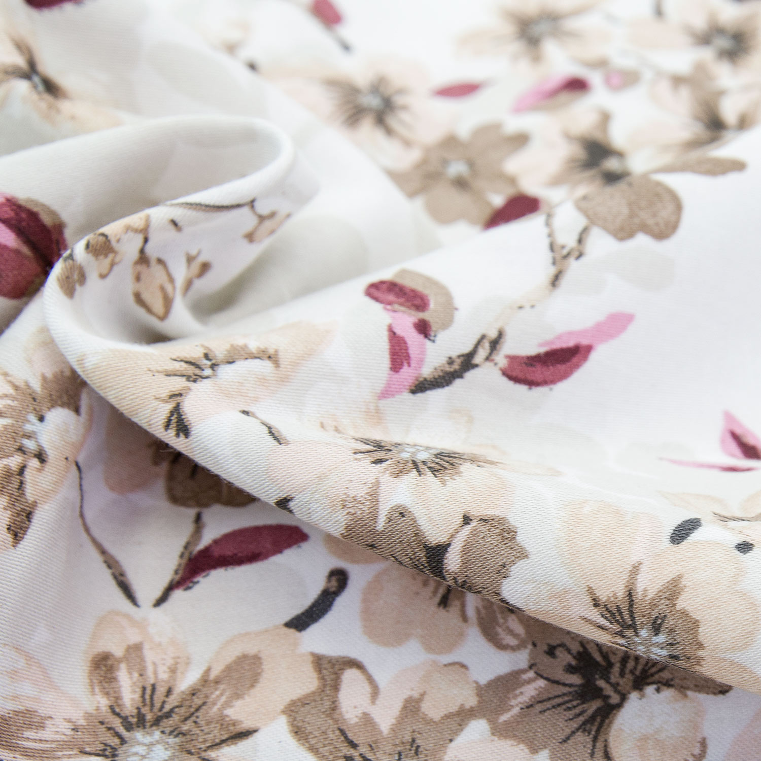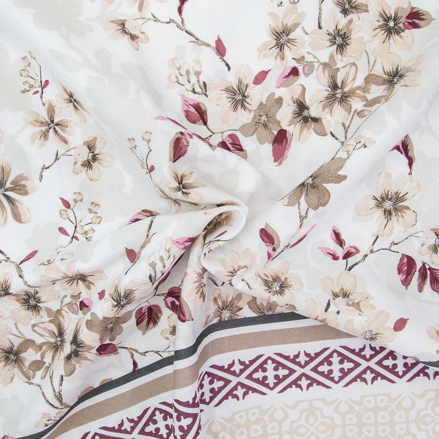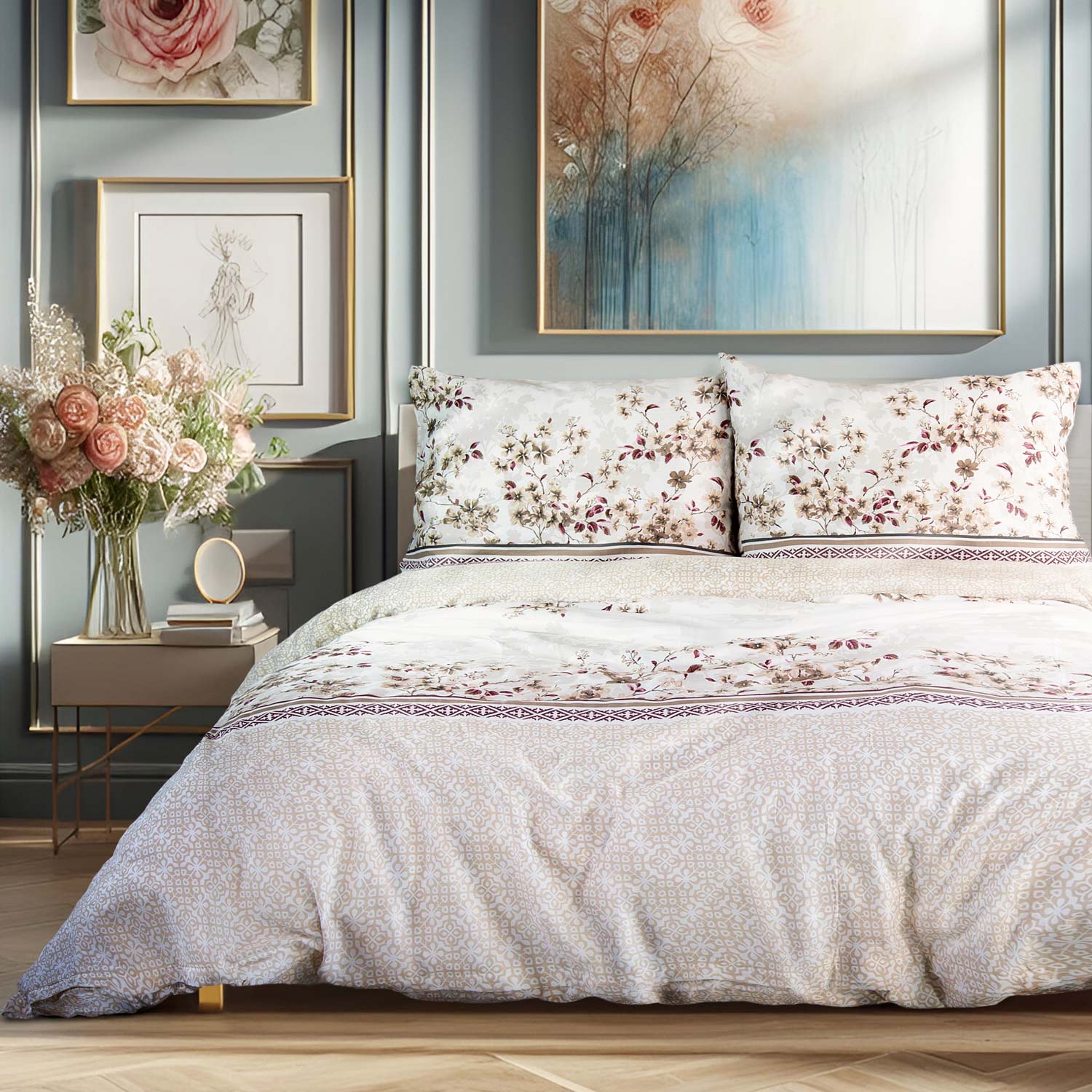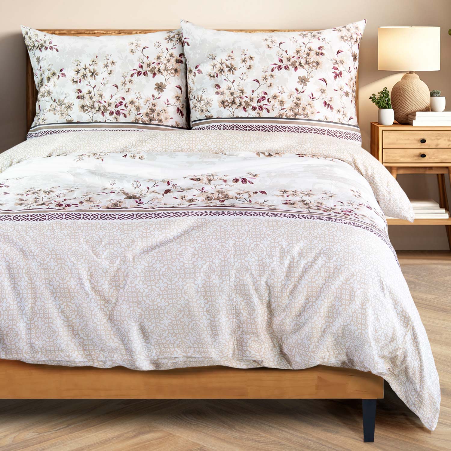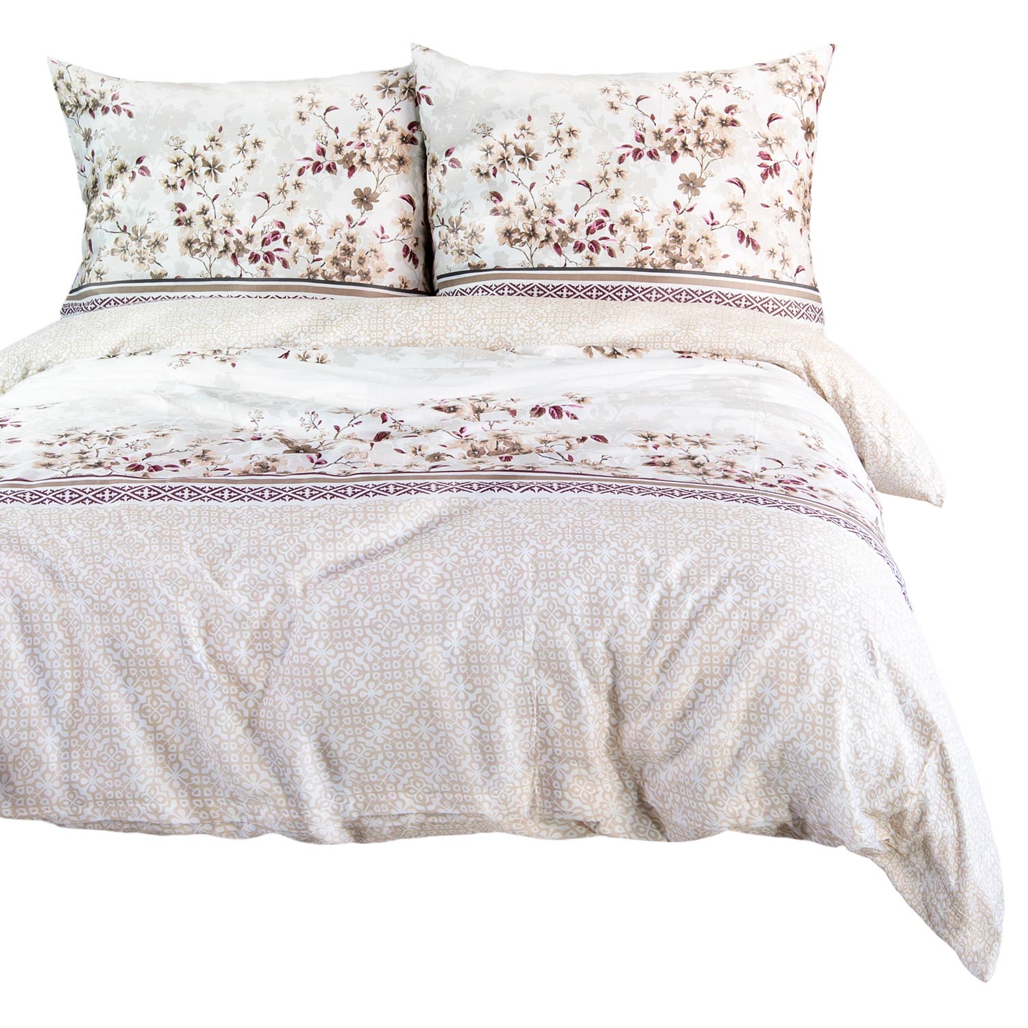 Pościel satynowa 140×200 kwiaty ornamenty beżowa biała 1529/1 z 1 poszewką 70×80 Satynlove 24