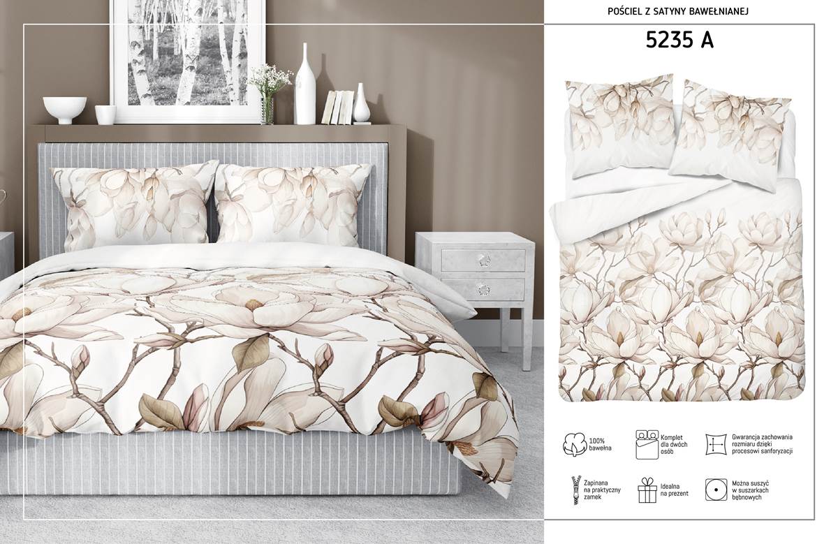 Pościel satynowa 160×200 5235 A biała kremowa beżowa jasna kwiaty Home Satin 59