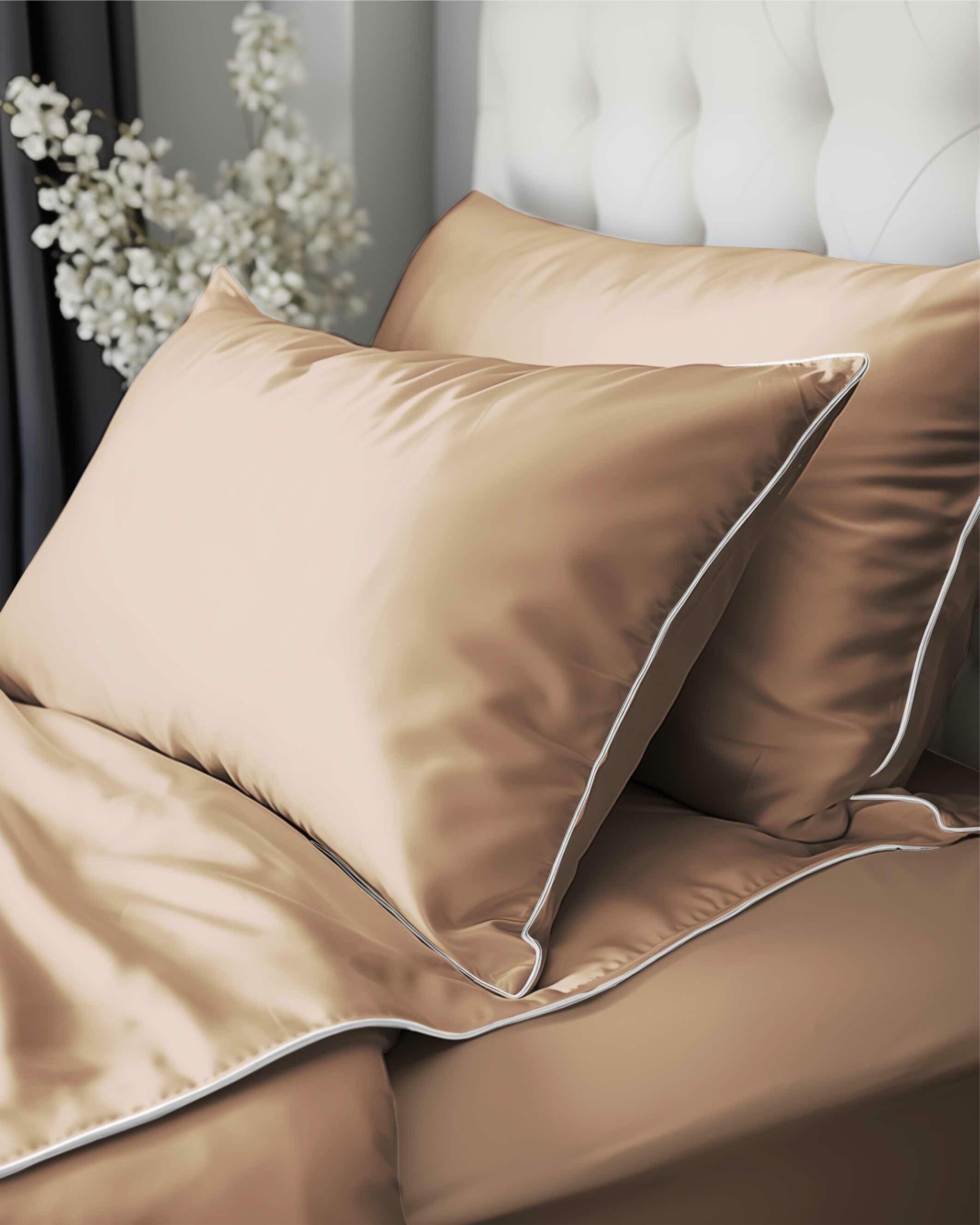 Pościel satynowa 160×200 brzoskwiniowa z lamówką Mako Satin 62