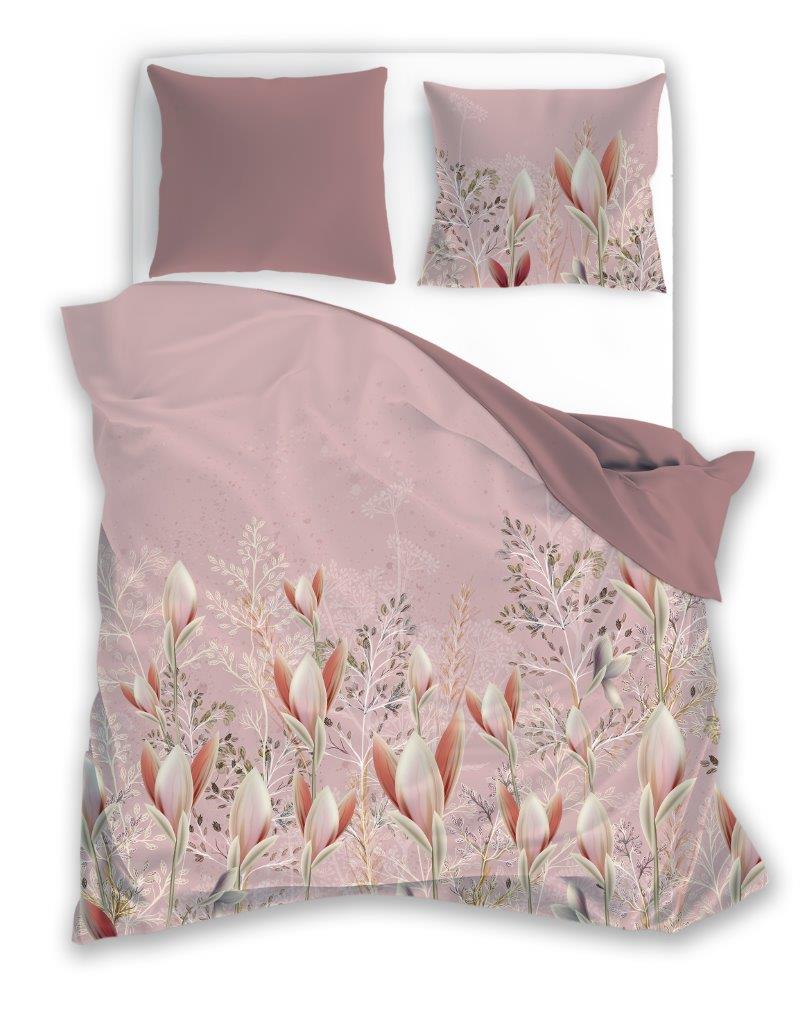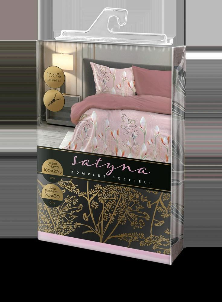 Pościel satynowa 220×200 Elegant 024 pudrowa różowa kwiaty dwustronna S 23 Faro