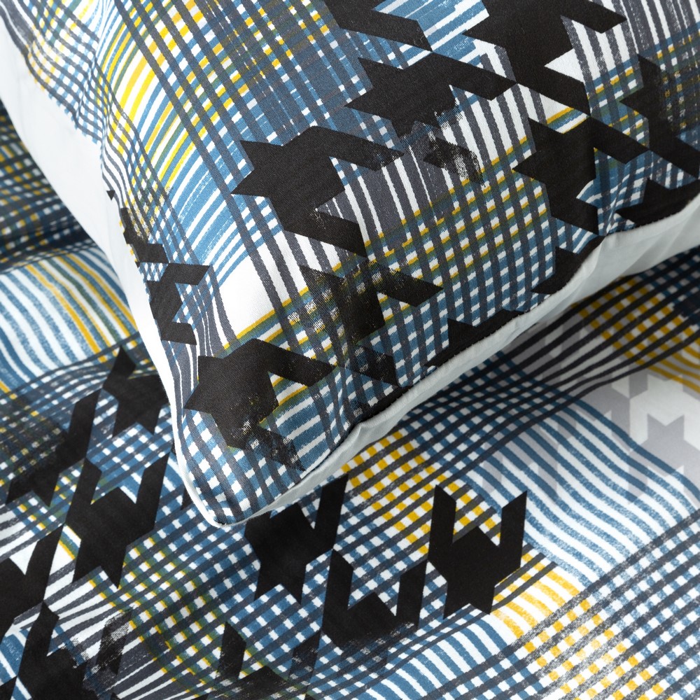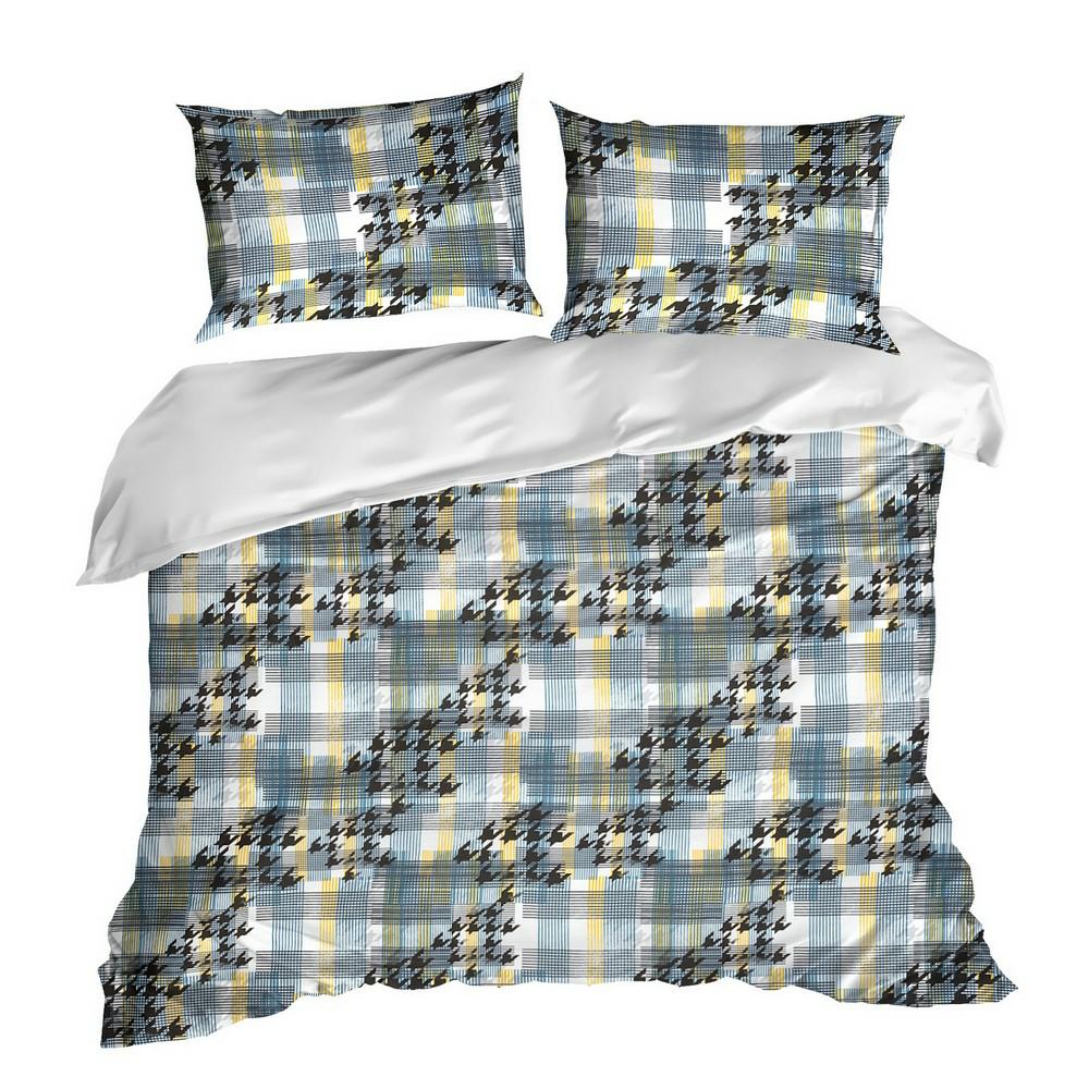 Pościel satynowa 220×200 Mandy kratka niebieska żółta czarna w pudełku pepitka Eurofirany