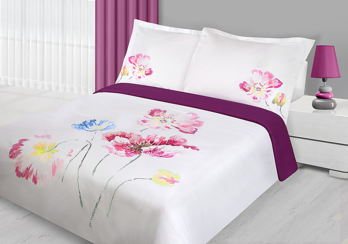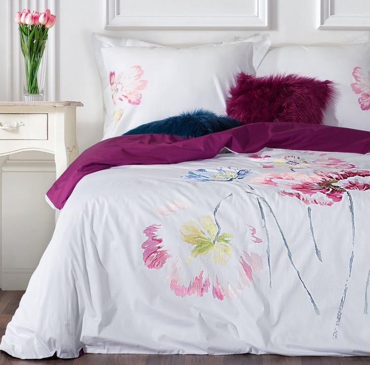 Pościel satynowa haftowana 200×220 Essence Biały+Bordo Eurofirany