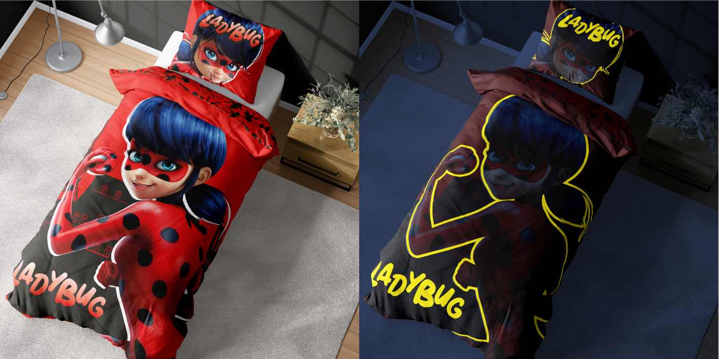 • Unikalny efekt świecenia w ciemności: Pościel świeci w ciemności dzięki użyciu nici fluorescencyjnej, tworząc bajkową atmosferę w sypialni. Dzięki tej właściwości, każda noc staje się pełna magii, co jest szczególnie uwielbiane przez dzieci.