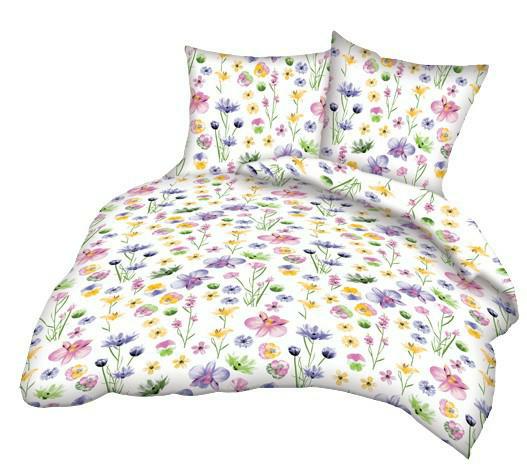 Pościel z kory 140×200 135B biała łączka kolorowe kwiatki